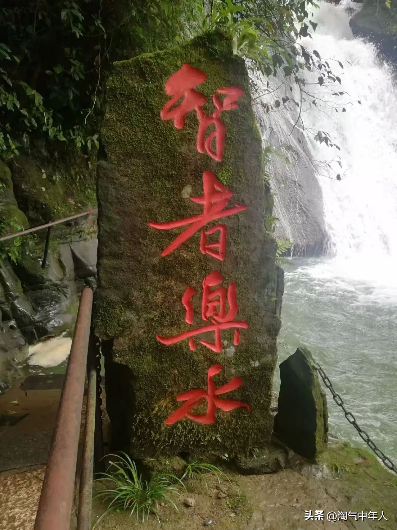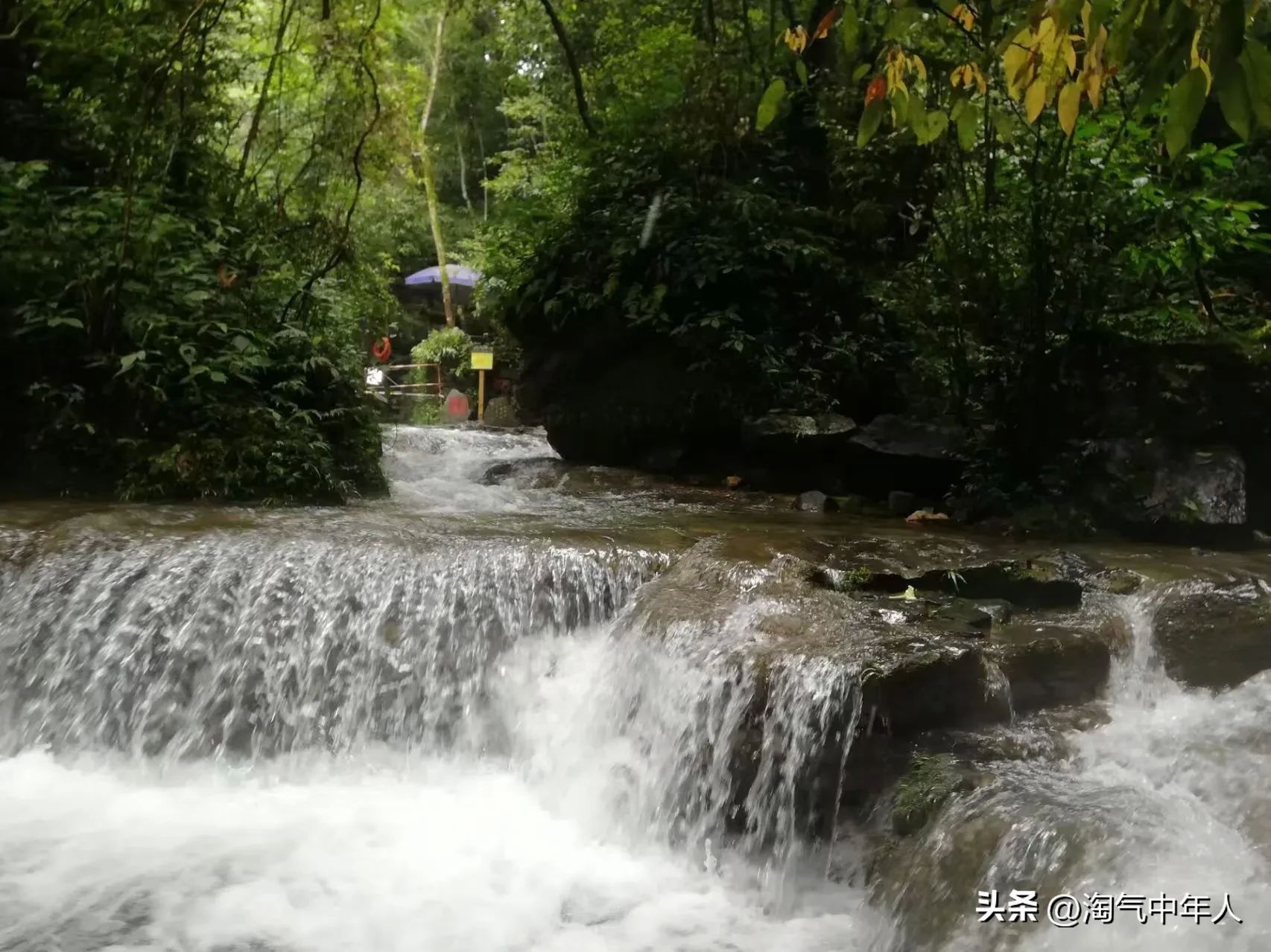 随人群向远处的水声潺潺而来,古东森林瀑布高约17米,两边各有铁链让游客作扶手用。泉水清凉,双脚落入水中一身清爽。沿着铁索攀登,冒着激流手脚并用,全身湿透。我是独行客,多刺激哟。可惜没有朋友拍照或录制视频,古东森林瀑布登瀑布是勇敢的活动虽然没有大的危险,双脚轮流向上攀登,后面有人催游客,越是想往上爬,越是走不起来,手抓铁链在空中摇摆着。群体出行旅游的有优势,前面有人拉手,后面有人动,还有有拍照或视频。结束瀑布的攀登后,走壮族特色的索道桥,登山到顶。坐滑道下山,换上原来的衣裤,返回景区大门,再到桂林北站,高铁返回深圳。