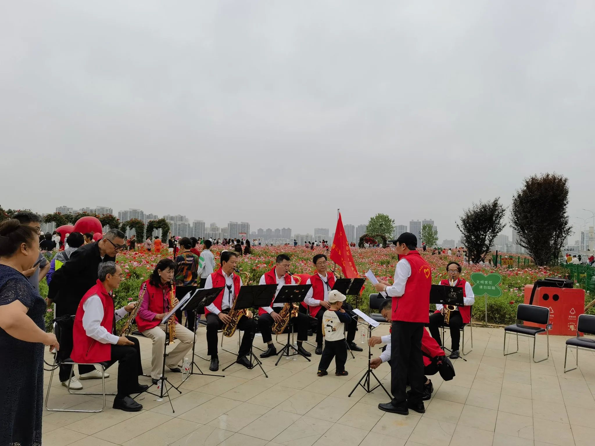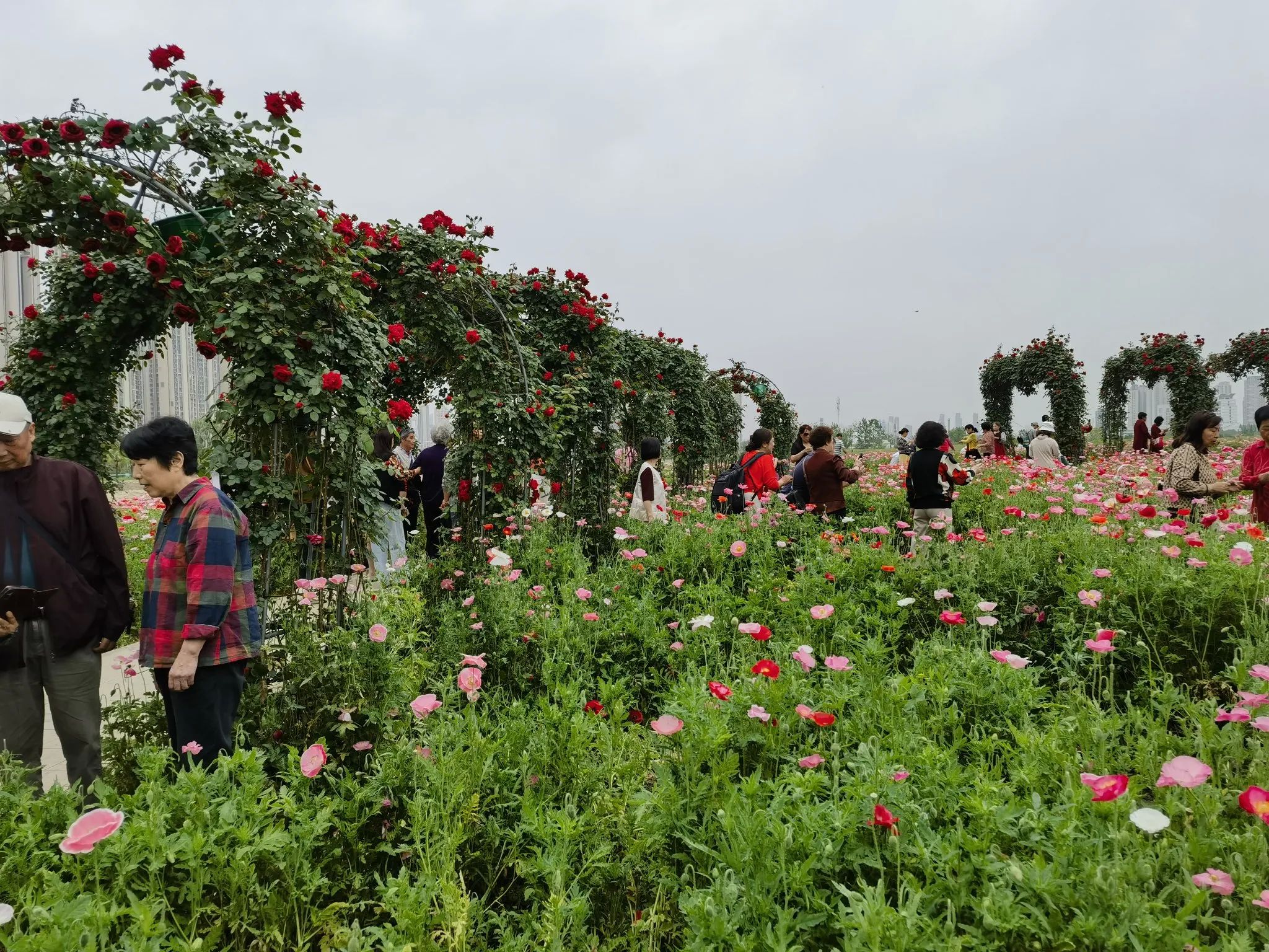 人群络绎不绝,徜徉在这花团锦簇之中。赏花的人当然还是以穿得花花绿绿的大妈们为主。为了不耽误看花和看孙子,有的大妈干脆把小孙子带上。