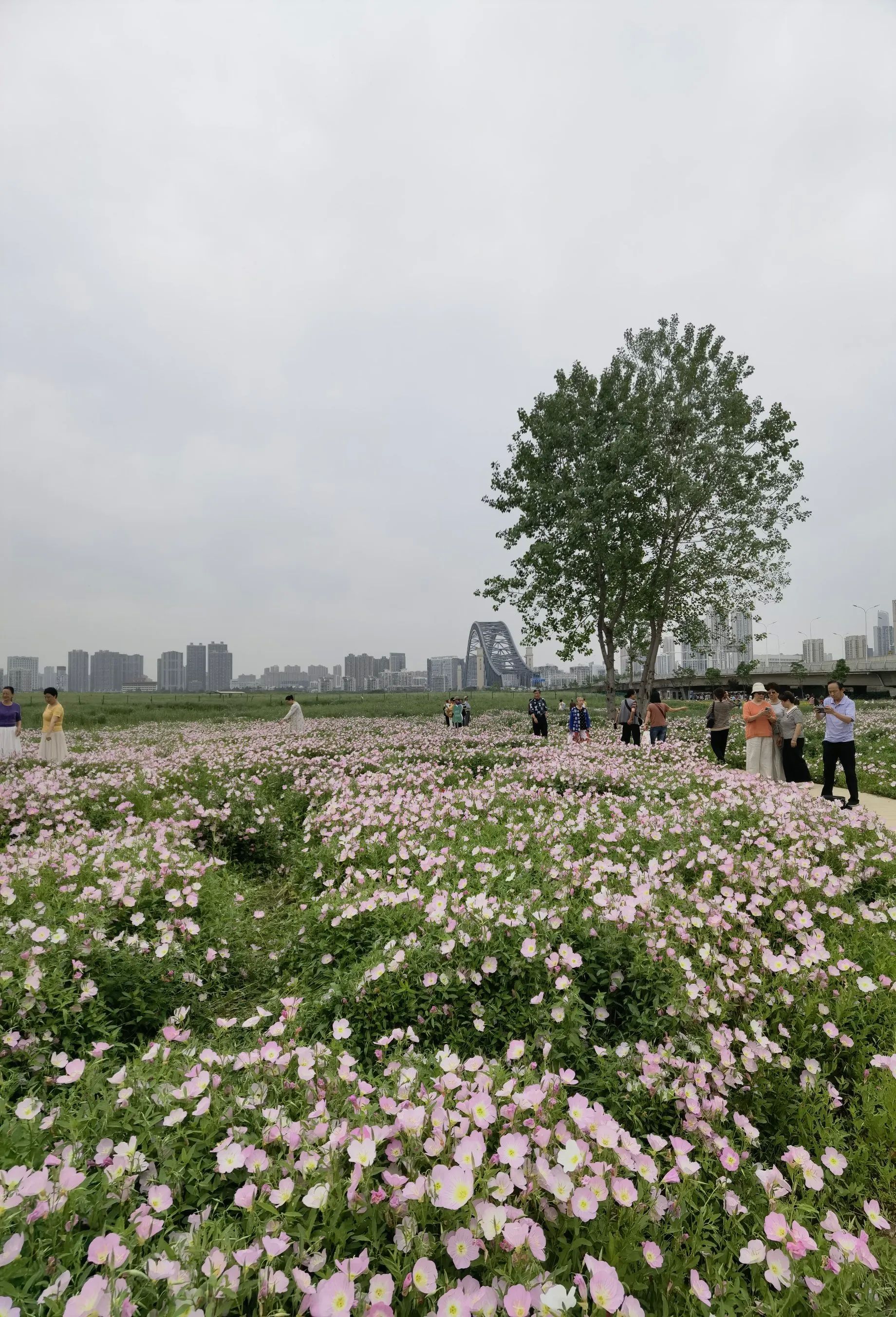 这汉阳汉江湾大约是块未开工的地块,临时利用起来种植了大片花卉。无非是波斯菊、柳叶马鞭草两三种花交错种植,但因为成片,面积够大,所以令人震撼。周边有铁桥和错落的高楼天际线作背景,更显得城在花中。