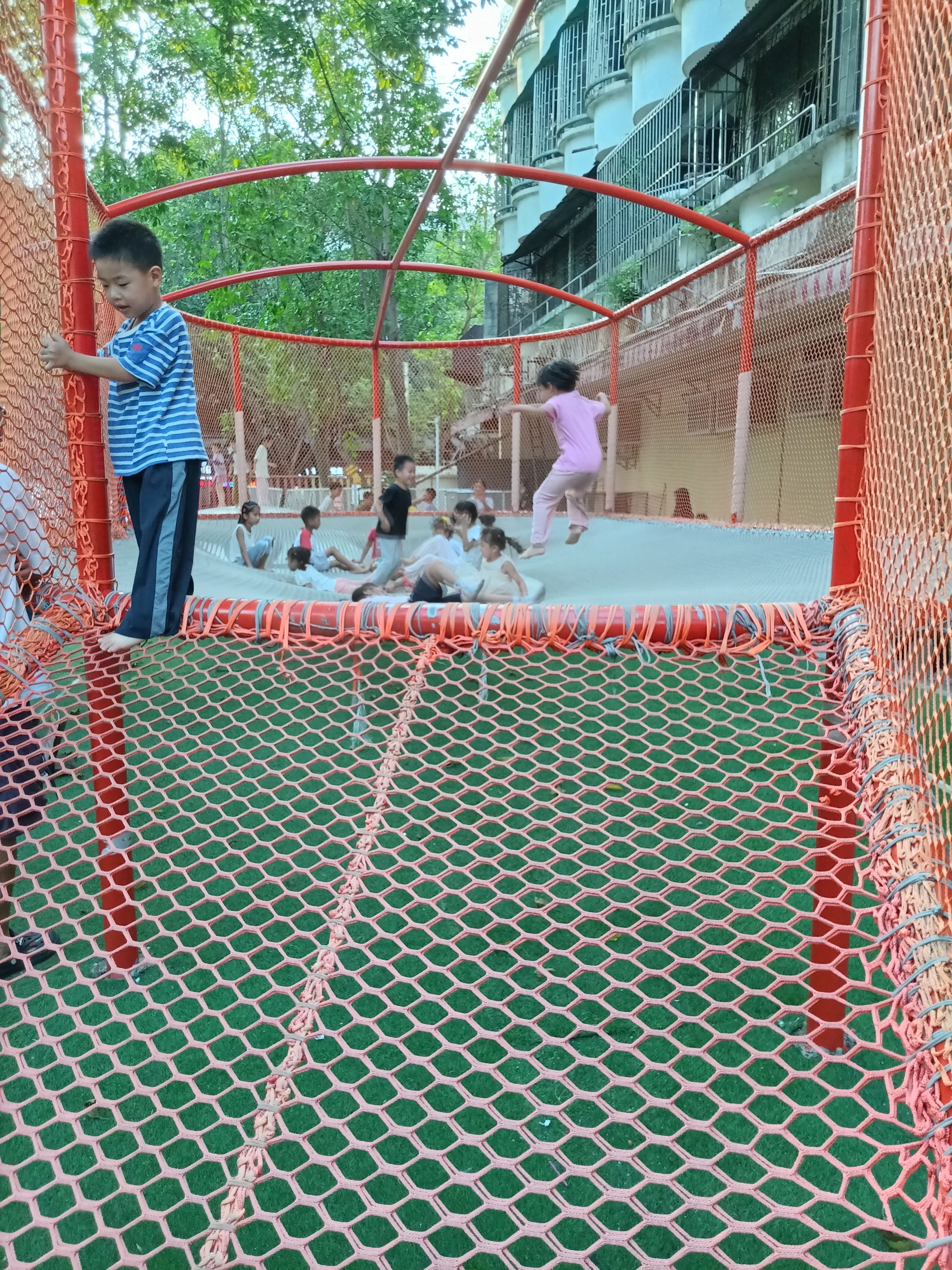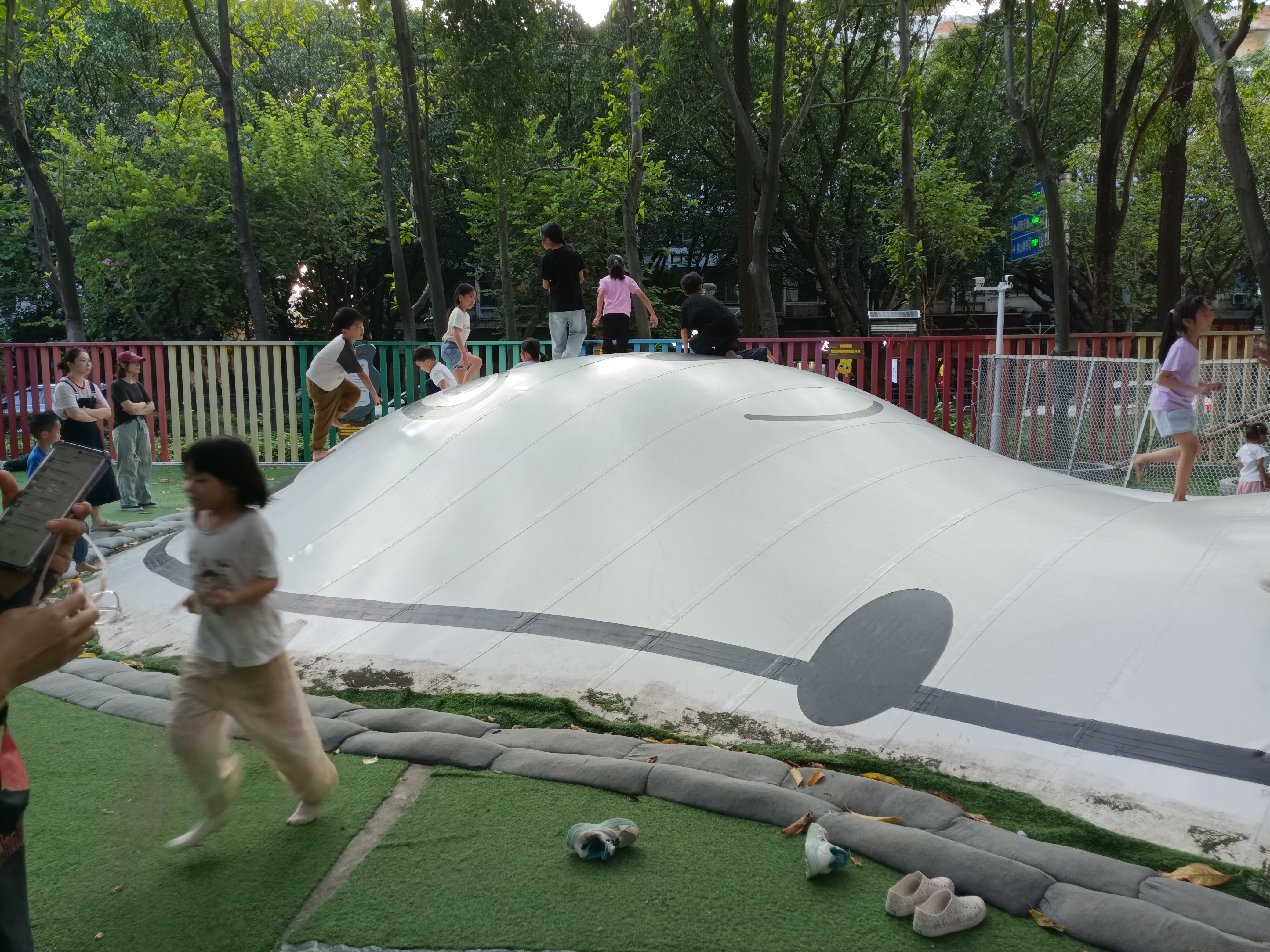 弹床、编织网探索、超长滑梯、沙池等设施一应俱全,娃可在此挖沙、攀爬尽情放电,家长只需找处树荫休息即可。