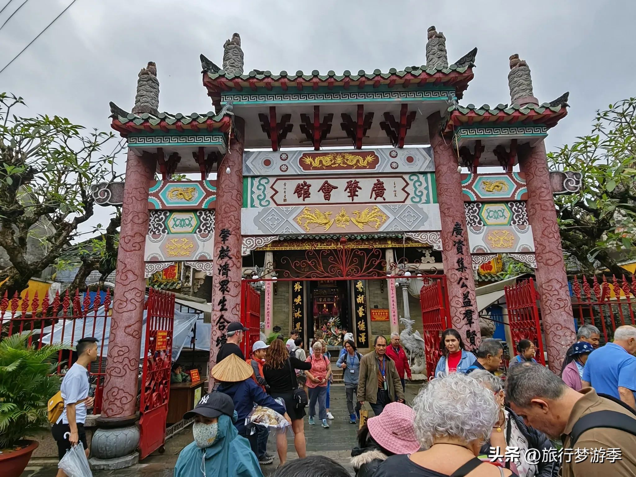 日本桥横跨在河上,桥身造型独特,充满了东方韵味。桥的两端雕有精美的动物图案,在风雨中见证着岁月的变迁。桥边的小亭子,为游客提供了休息和欣赏风景的好去处。中国会馆则是古城中另一处重要的建筑,展现了中国传统文化的博大精深。会馆内雕梁画栋,装饰精美,让人感受到浓厚的历史氛围。