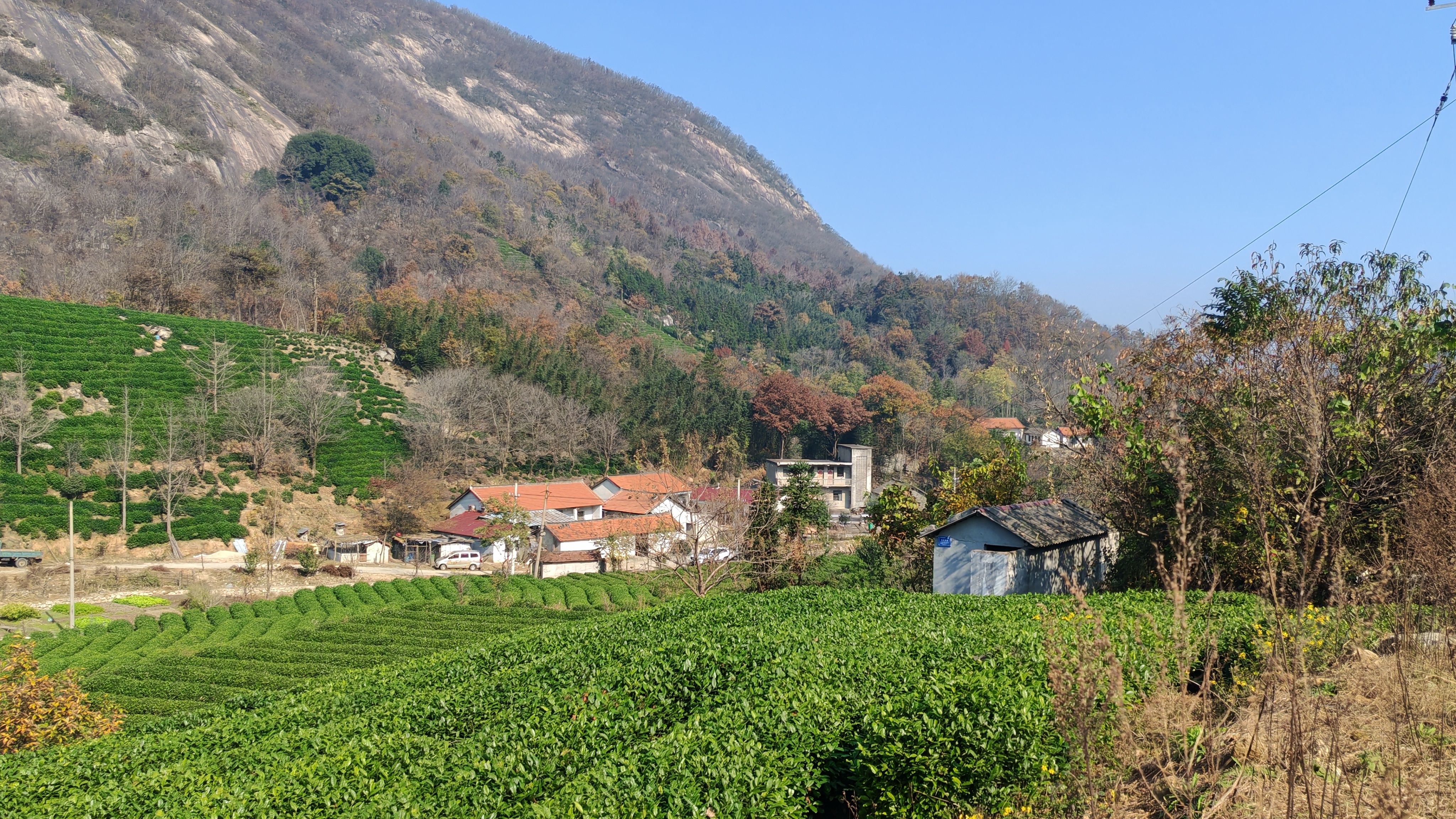 茶山在秋天酿出一坛深邃的碧,与漫山的红叶醉成一片。