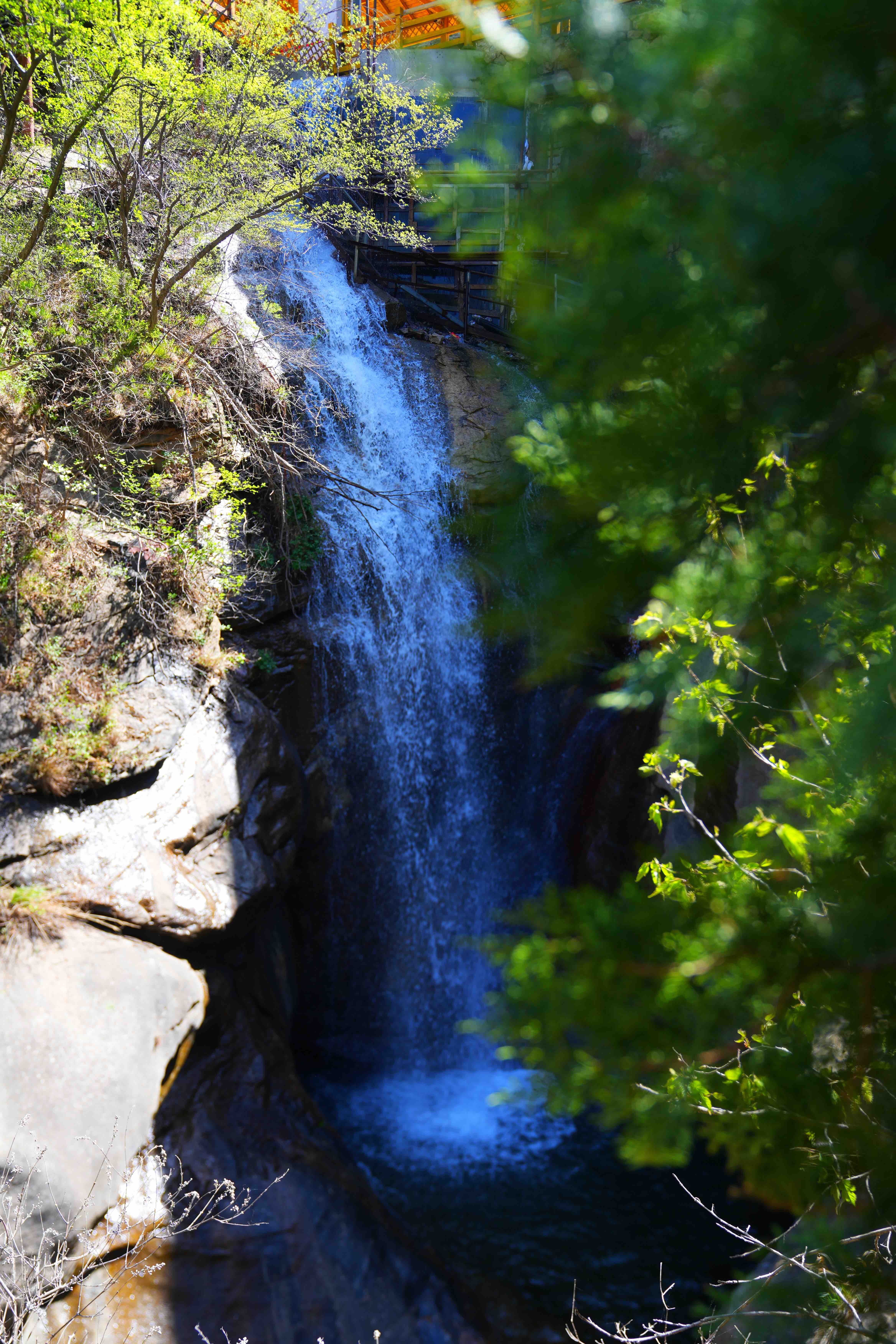 清凉谷的 「千尺珍珠瀑」是北方的“水帘洞”,86米高的瀑布如银河倾泻,水雾朦胧中藏着一条200多米的神秘洞穴。再往深处走, 五瀑十三潭星罗棋布,十分清凉。