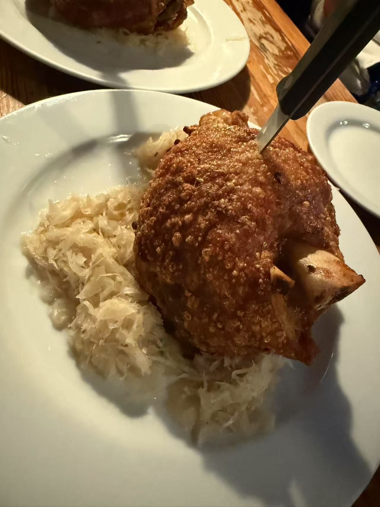 然后预定了一个德国本地的餐馆,品尝“德国啤酒,烤猪肘还有香肠,”吃一顿地道的德国餐,德国啤酒的味道真的不错,有机会可以尝尝,国内的啤酒也很多,但是相比较起来,德国本地啤酒更加浓郁。