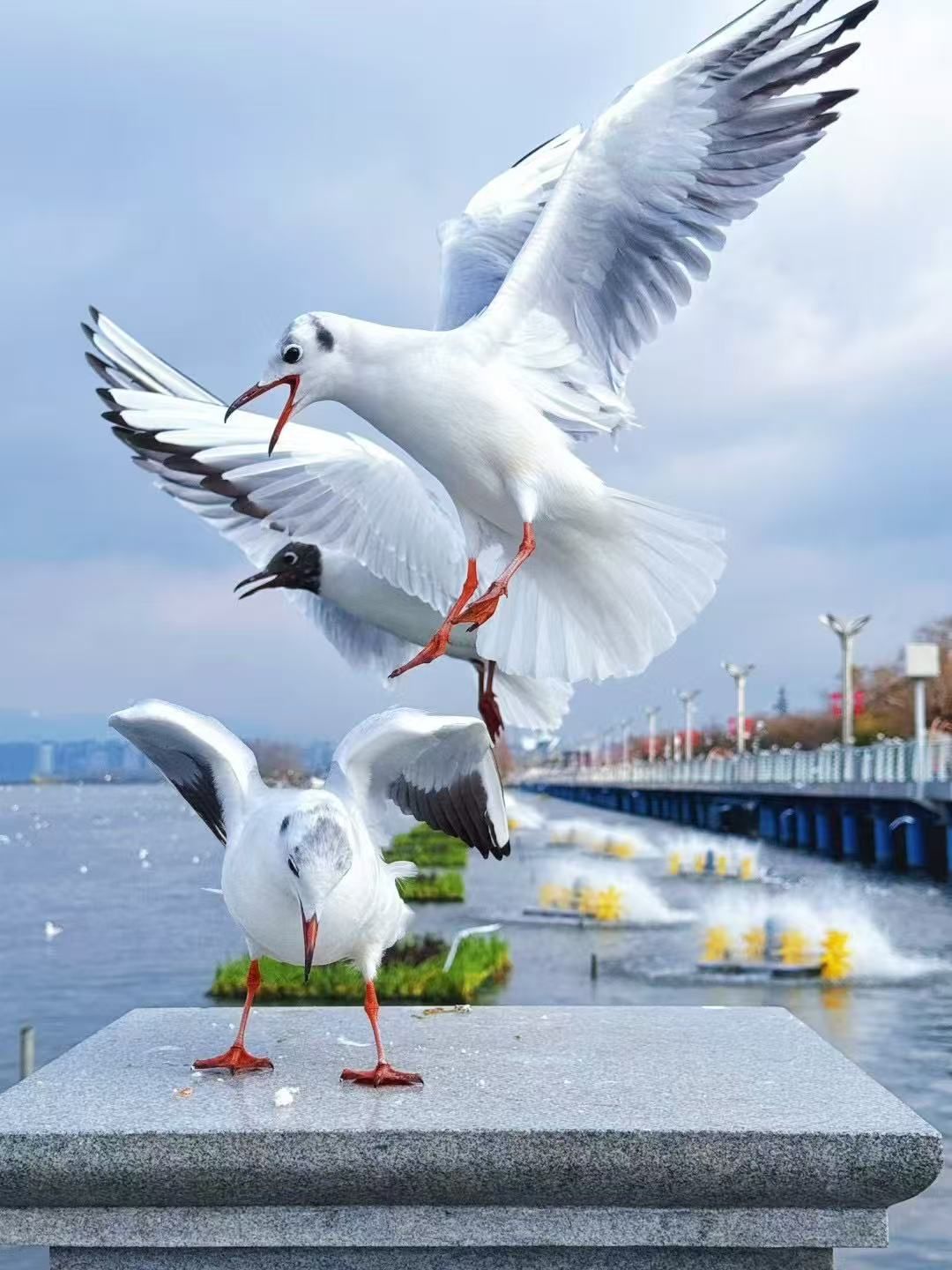 - 翠湖公园 :作为昆明的“冬日客厅”,每年冬季都有大量红嘴鸥在此栖息。你可以买一包专用鸥粮,与群鸥亲密互动,还能欣赏到红嘴鸥与云南陆军讲武堂青瓦飞檐同框的美景。