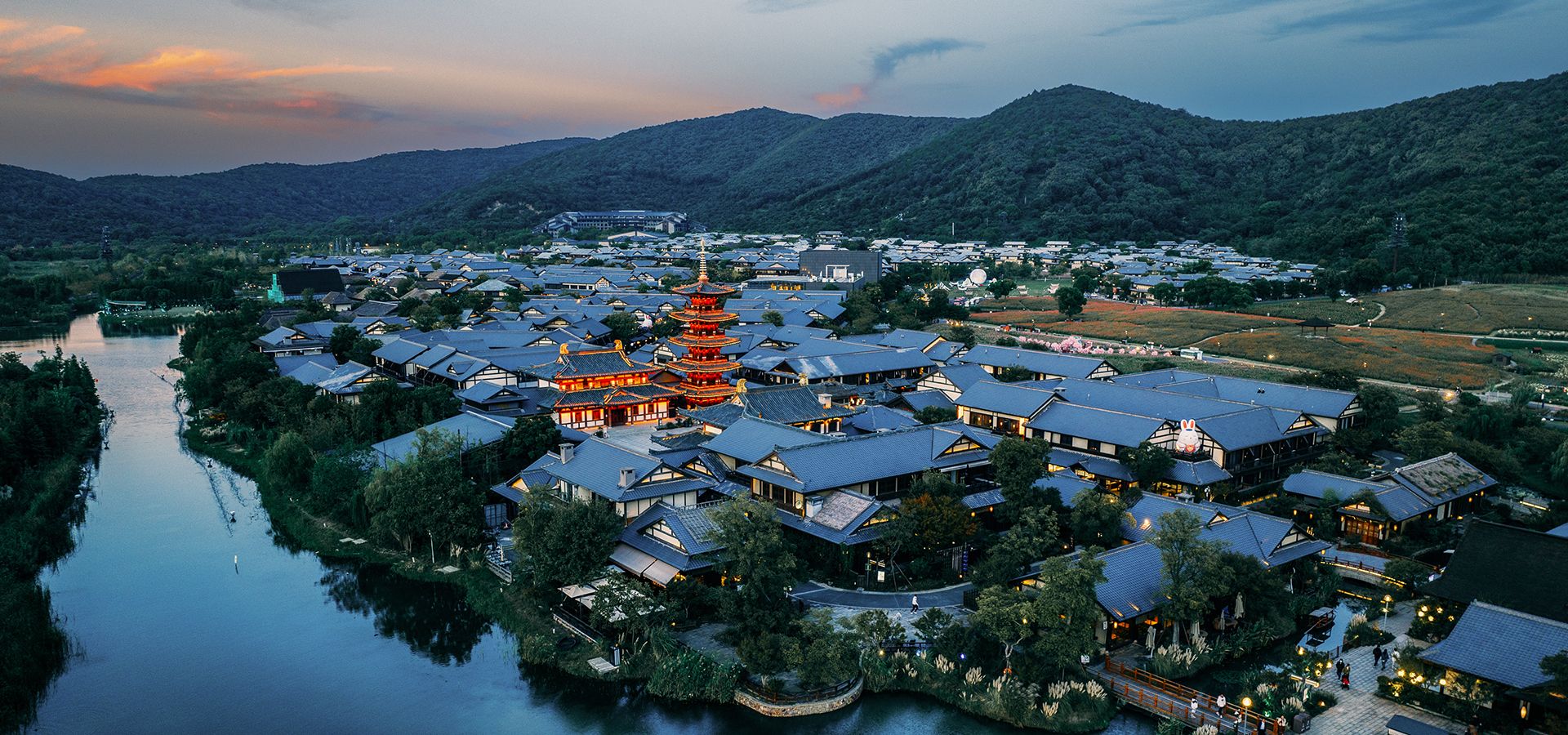 特色:唐风宋韵建筑群,白墙青瓦间小桥流水,夜晚灯光秀如梦似幻。