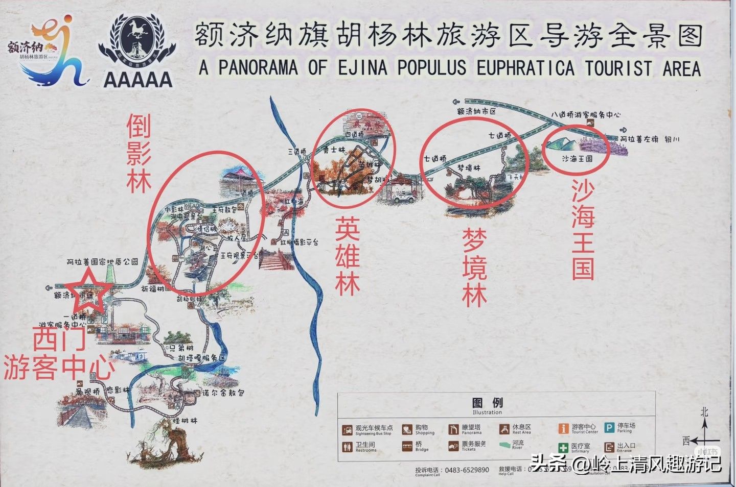 今天是10月9日,一早便前往此次额济纳之行的核心景点、5A景区——额济纳旗胡杨林旅游区(阿拉善沙漠世界地址公园,图1)。它是世界仅存的三大原始胡杨林之一,总面积约45万亩,凭借独特的荒漠生态系统、壮丽的金色秋景以及胡杨坚韧的生命力闻名于世,被誉为一生必去一次的中国最美秋景之一。