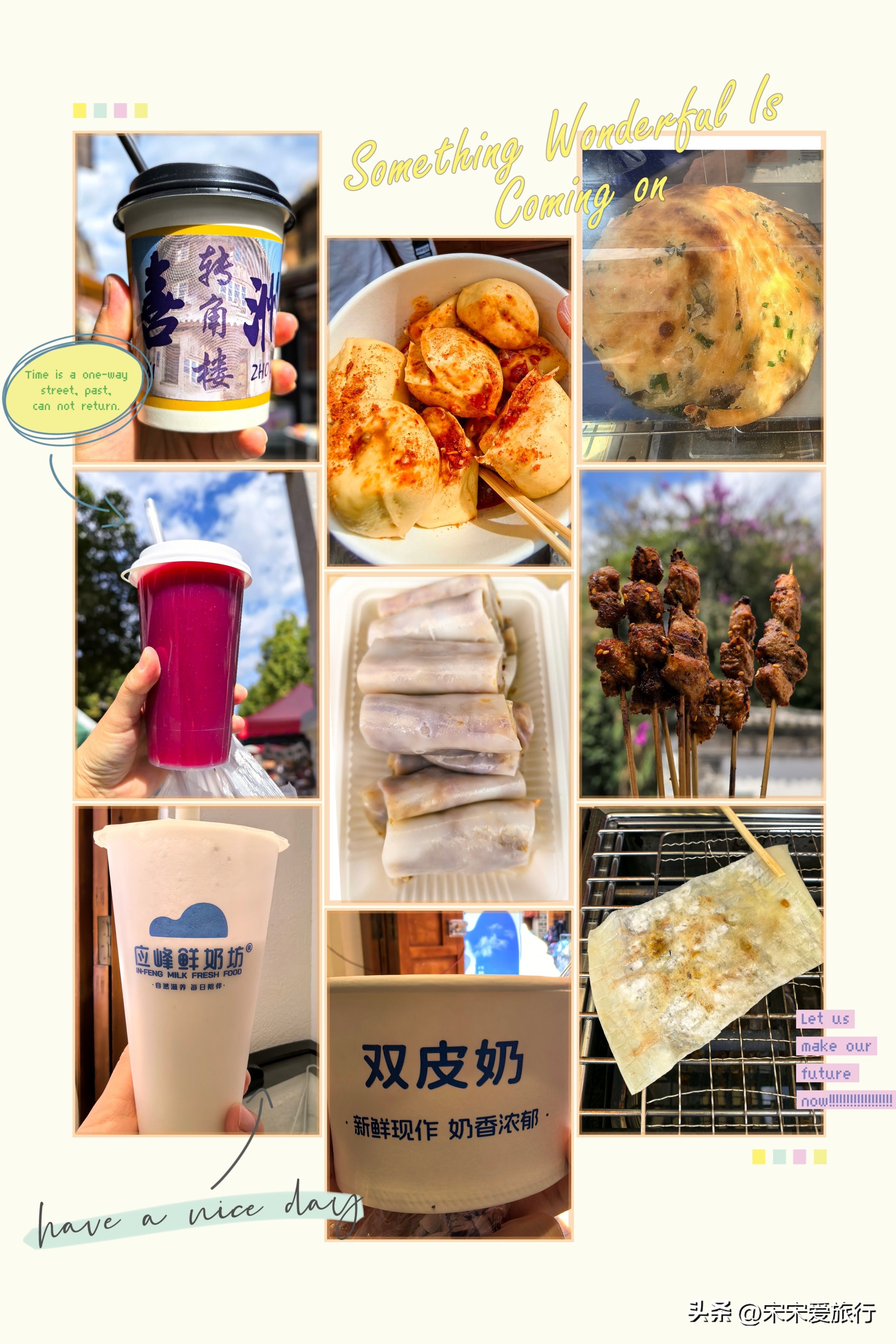 喜洲古镇不大,但地方特色小吃很多,仅仅一条街就让我们出饱喝足撑到爆。鲜花瓦罐奶茶鲜榨石榴汁喜洲酸奶喜洲破酥粑粑烤包浆豆腐烤乳扇漾濞卷粉喜洲一把小串,就连我们家狗狗都跟着混吃混喝混到饱