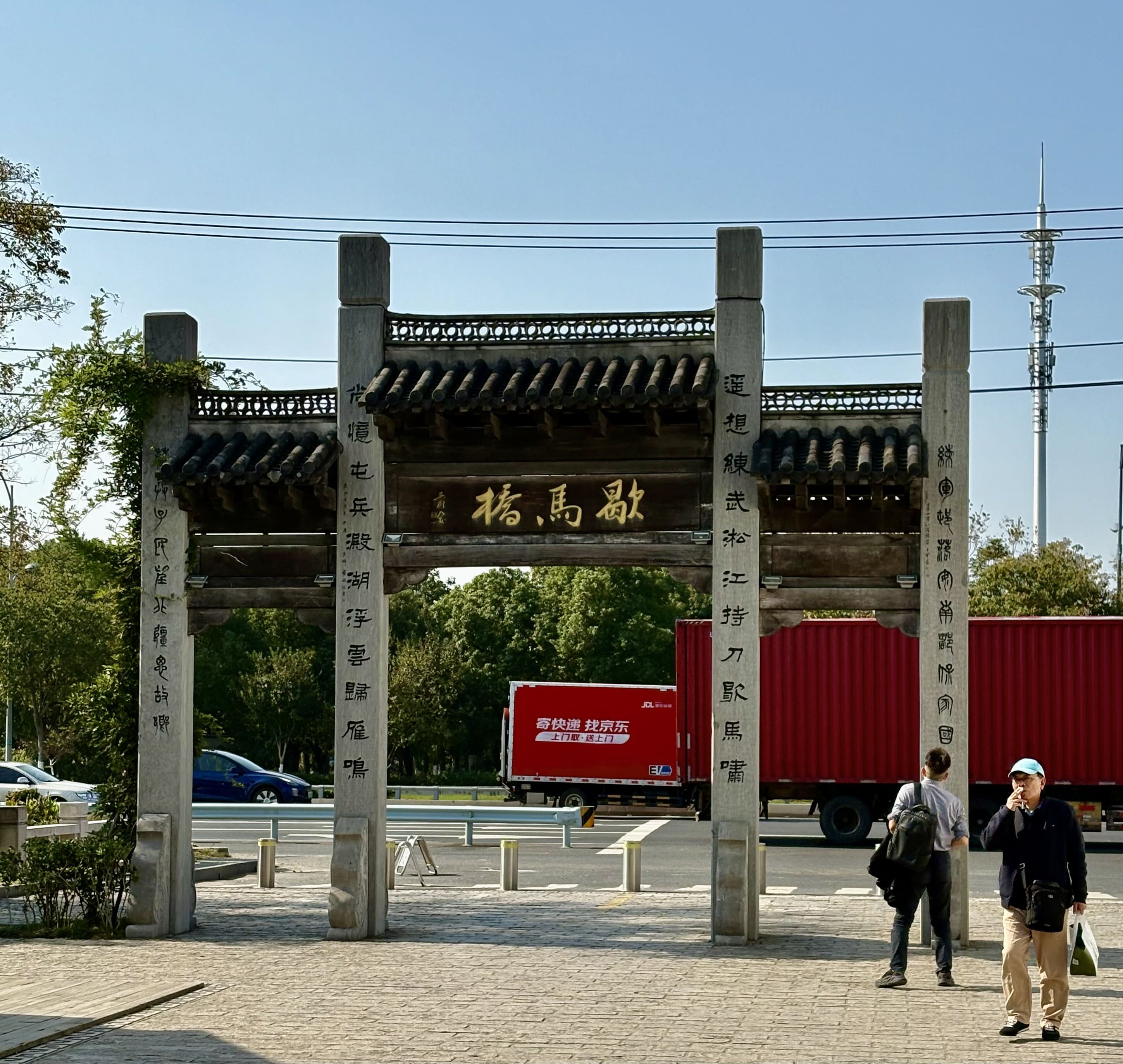 吾辈已是"七五"之人,行程驾驶自然得悠着点。行车40多公里后,中途车停昆山"歇马桥",一来稍作休整,二来探觅一下这个以"文创产业"为主的"网红"景区之真面目。