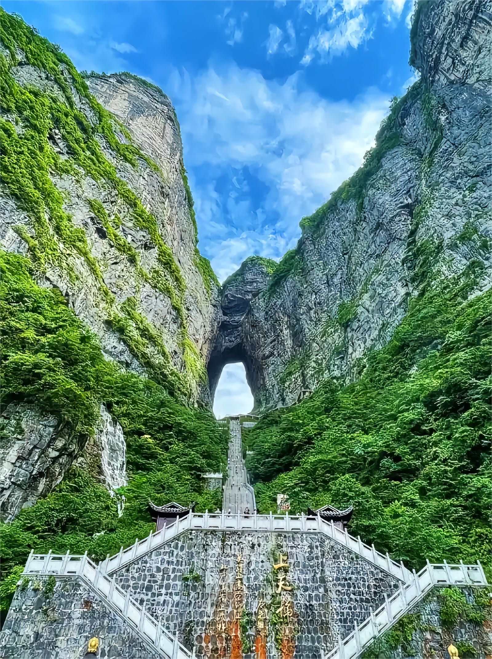 天门洞:世界最高海拔天然穿山溶洞,999级天梯很壮观,可爬天梯或乘扶梯。