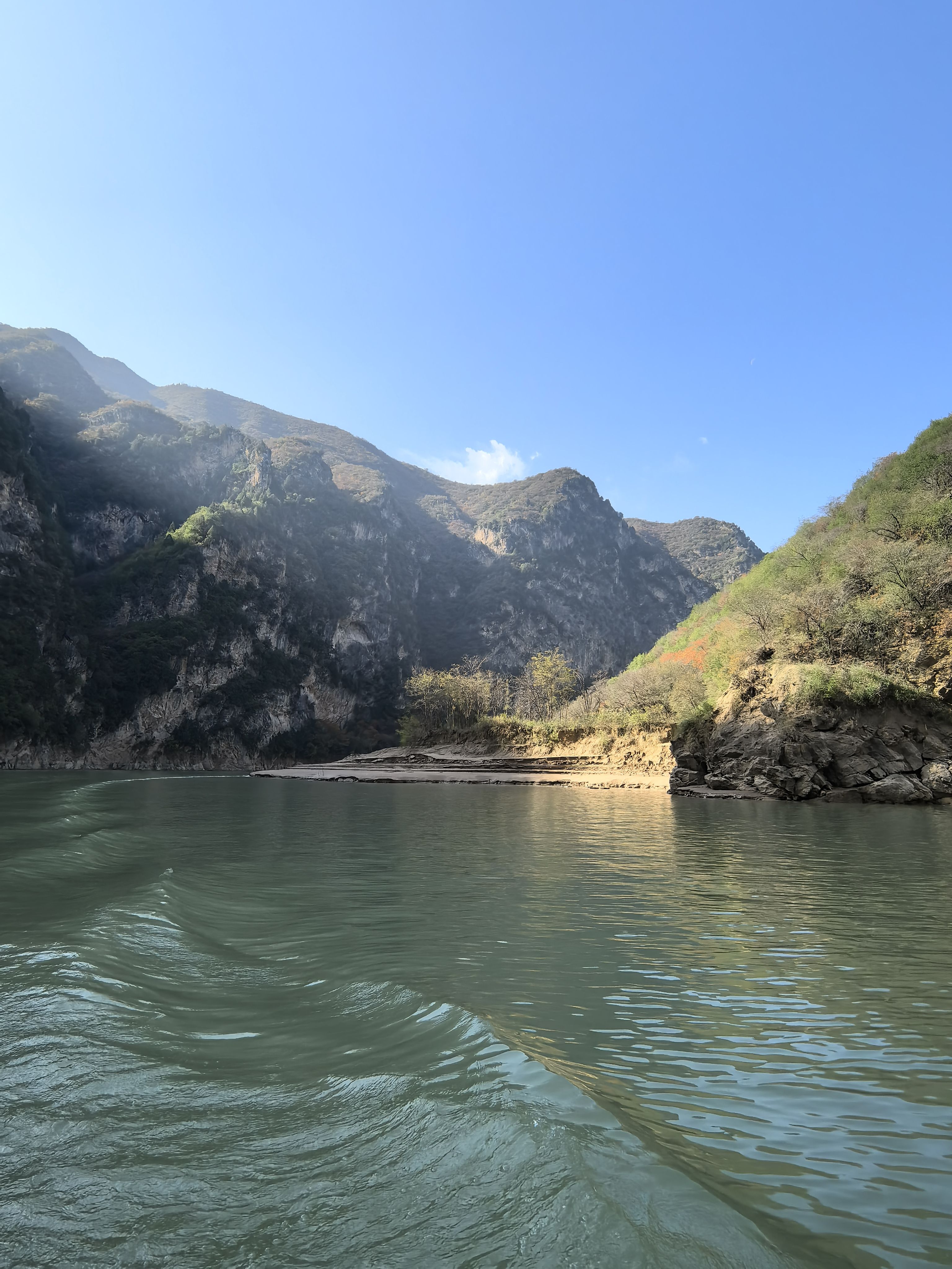 昨天的天气太给力了,可以说是2025年多雨秋季中难得一见的好天气。女婿驾车,女儿、老伴与我,晨8点由西安出发,到陕西省泾阳县郑国渠景区饱览那大好的山河风光。到景区后,大巴车沿着险峻蜿蜒的山间公路,七拐八拐,穿越十几个隧道,经过数不清的弯道,将游客送到了水面浩淼、平静如镜的碧绿的天然湖泊郑国湖湖畔。我们登上游船,徜徉在碧如宝石的宽阔湖面,两岸㶷丽的景色,不由得啧啧称叹。