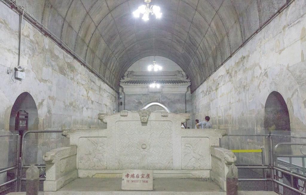 定陵的地下宫殿由地宫和三层墓道组成,结构复杂,布局严谨。墓室内陈设庄重,金碧辉煌,反映出明代皇家的等级观念和宗教信仰。其中最引人注目的是“皇帝宝座”,象征永恒的权力与威严。