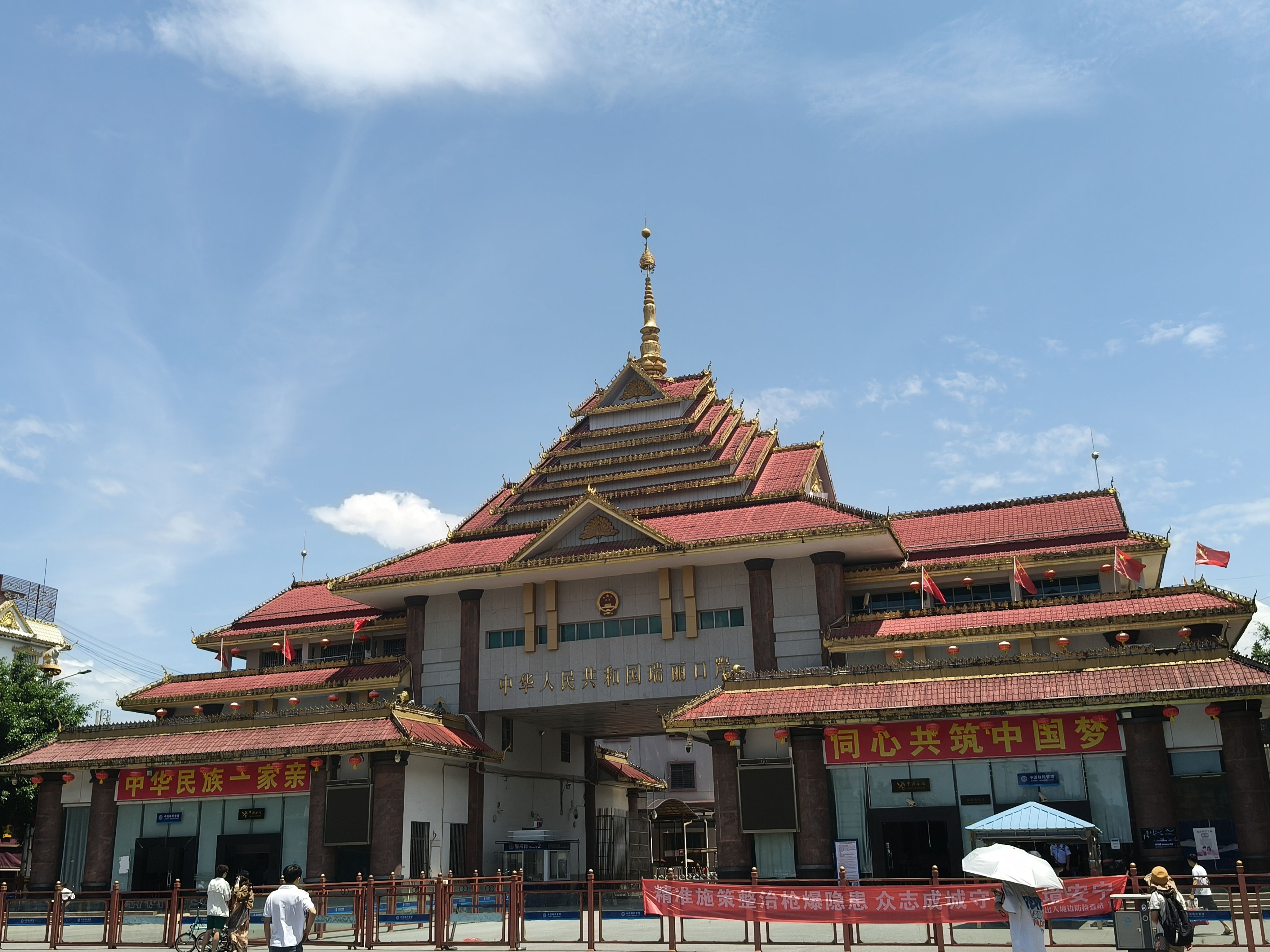 从“一寨两国”出来直奔瑞丽口岸。口岸这里有免税商店,还有太多的卖玉石的店铺。各种缅甸、泰国的膏药、药贴、小工艺品等等琳琅满目,自贸区很大。因为没什么要买的,随便逛了一圈,拍几个国门照片就撤了。主要是热的很,有点中暑,兴致就不怎么高了。本想在“瑞丽古镇”(其实不是古镇,是新建的游乐美食小镇)吃晚饭,看晚上演出再回邦腊掌,但还是决定早点回去泡温泉为好。进城吃了缅甸餐(忘了拍照),逛了附近的农贸市场就打道回府了。对,逛农贸市场时真让人感动,老乡们朴实真诚,如实介绍自己的商品,一点也不夸张不欺诈,太喜欢这边的浓浓人情味了,难得。