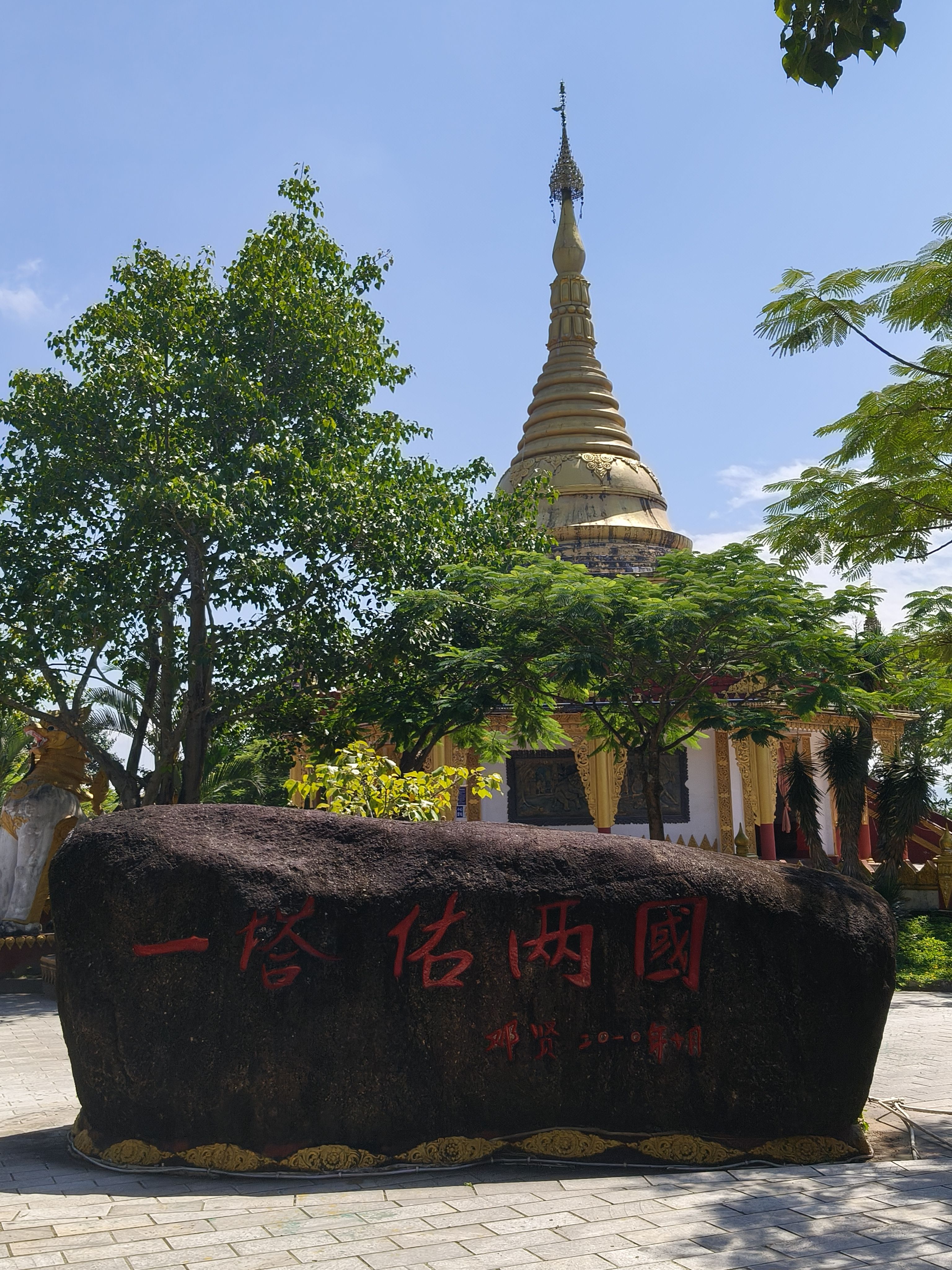 从金塔出来就去了“一寨两国”。距离瑞丽市区约10公里,在瑞丽市姐相乡银井村。“一寨两国”是中国边境线上最独特、最有趣的景观之一,完美体现了瑞丽“一个坝子、两个国家、三座城市”的特殊地理风貌。是一个傣族村寨被中国和缅甸两国的国界线一分为二,中方一侧称为 “银井”,缅方一侧称为 “芒秀”。这里的居民语言相通、习俗相同,世代通婚,过着“同走一条路,共饮一井水”的“跨国”生活。