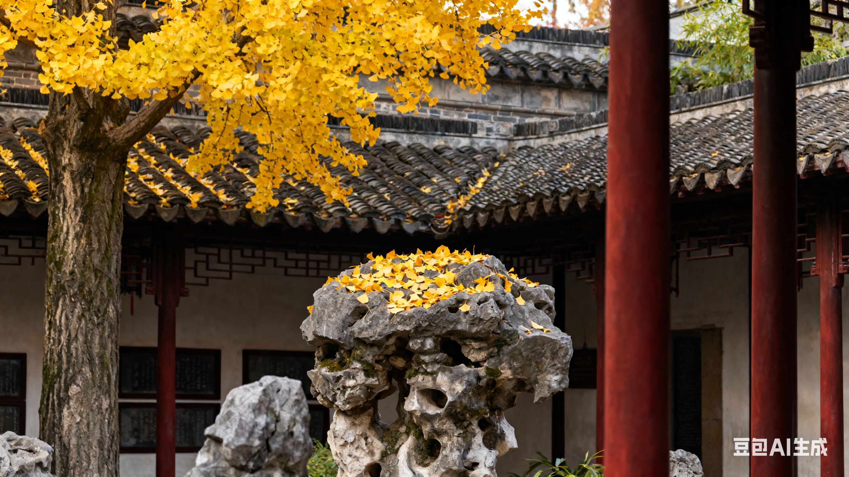 个园的银杏藏在庭院深处,与假山、竹林、曲径搭配得恰到好处。漫步其中,金黄的叶片与青灰的砖瓦、朱红的廊柱形成鲜明对比,一步一景,处处是江南园林的精巧。偶尔有银杏叶落在肩头,带着淡淡的草木清香,让人忍不住放慢脚步,细细品味这份秋日静好。