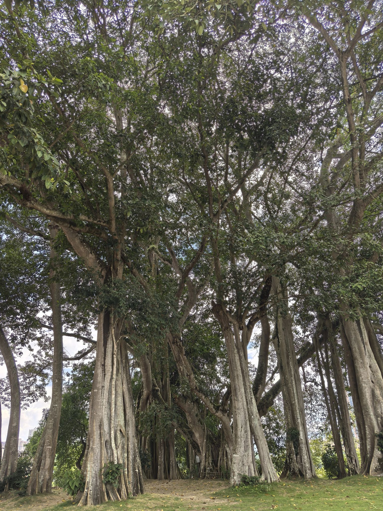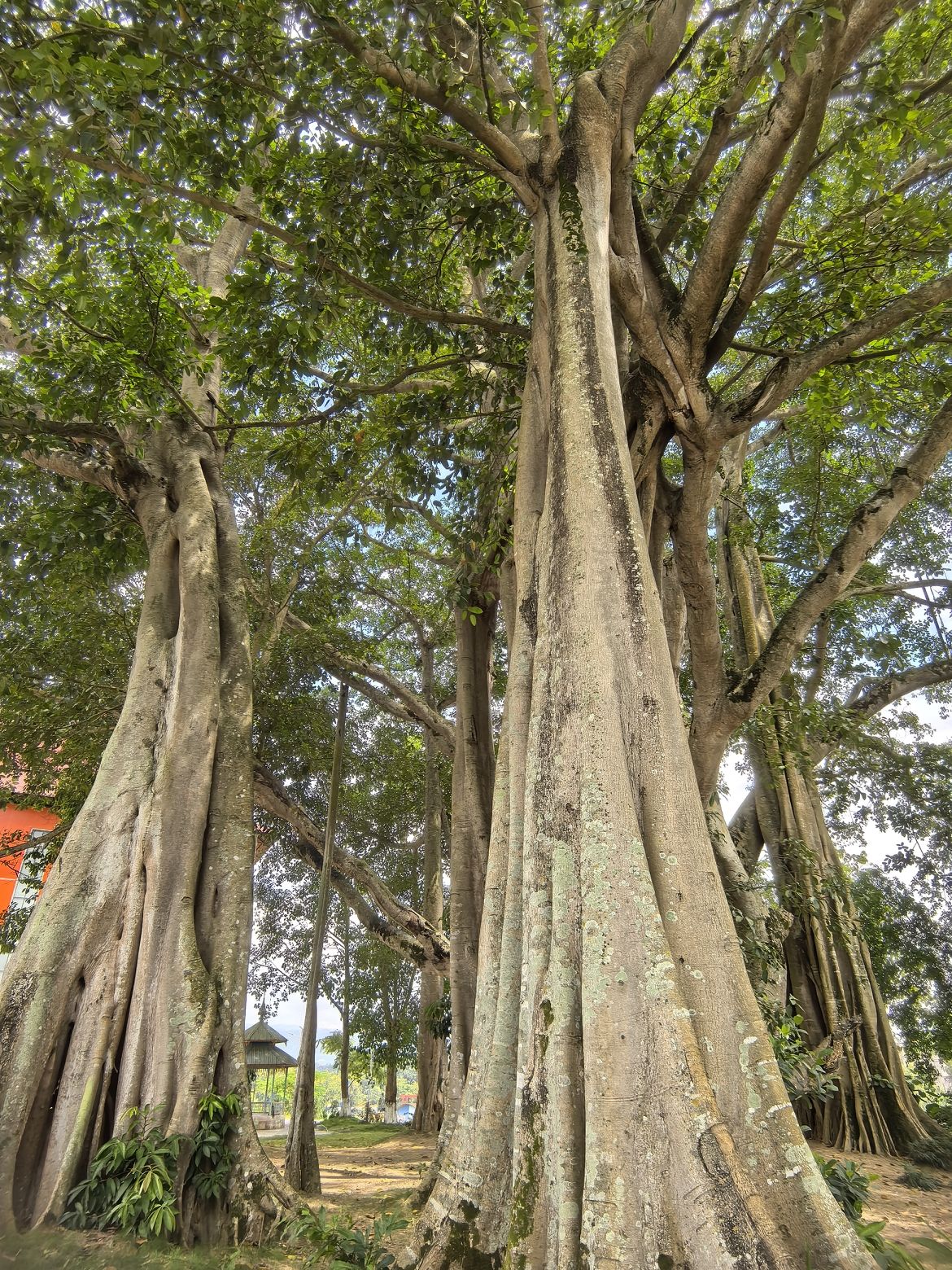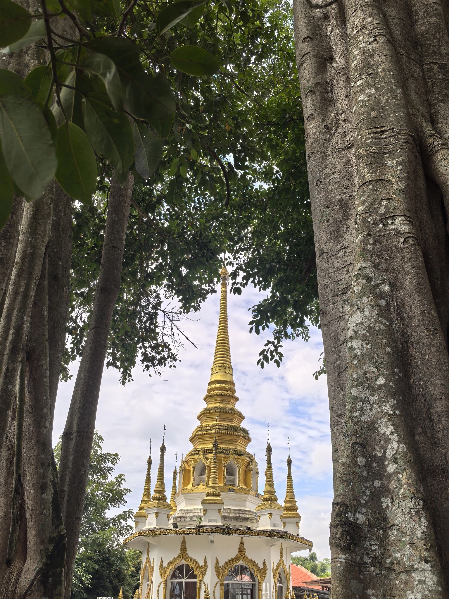 榕树王:这棵树树龄约500年,是瑞丽最大的榕树,占地有数亩之广。起初它只是独株,垂下的榕须扎入泥土后开始生长,长大的树枝又有气根伸向地面持续繁衍,历经几百年,造就了“独树成林”的奇观。如今已长出15株支柱根,身处其中,仿佛穿越丛林。