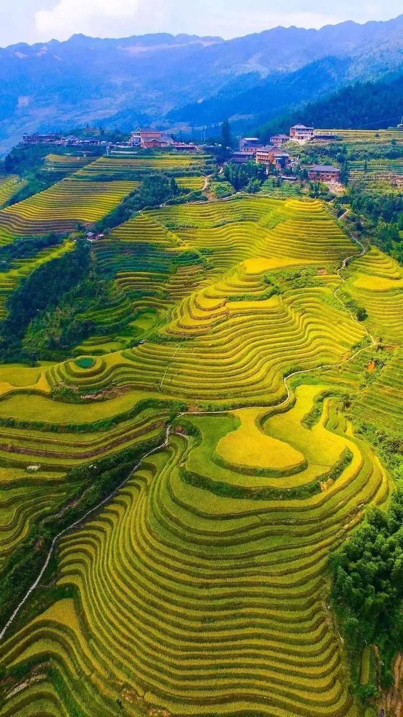 5-6月灌水期镜面梯田,9-10月金色稻浪