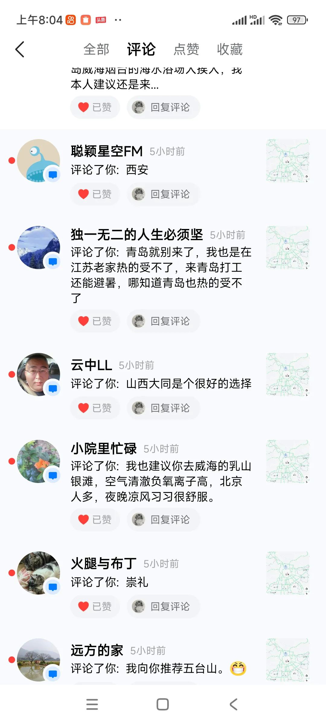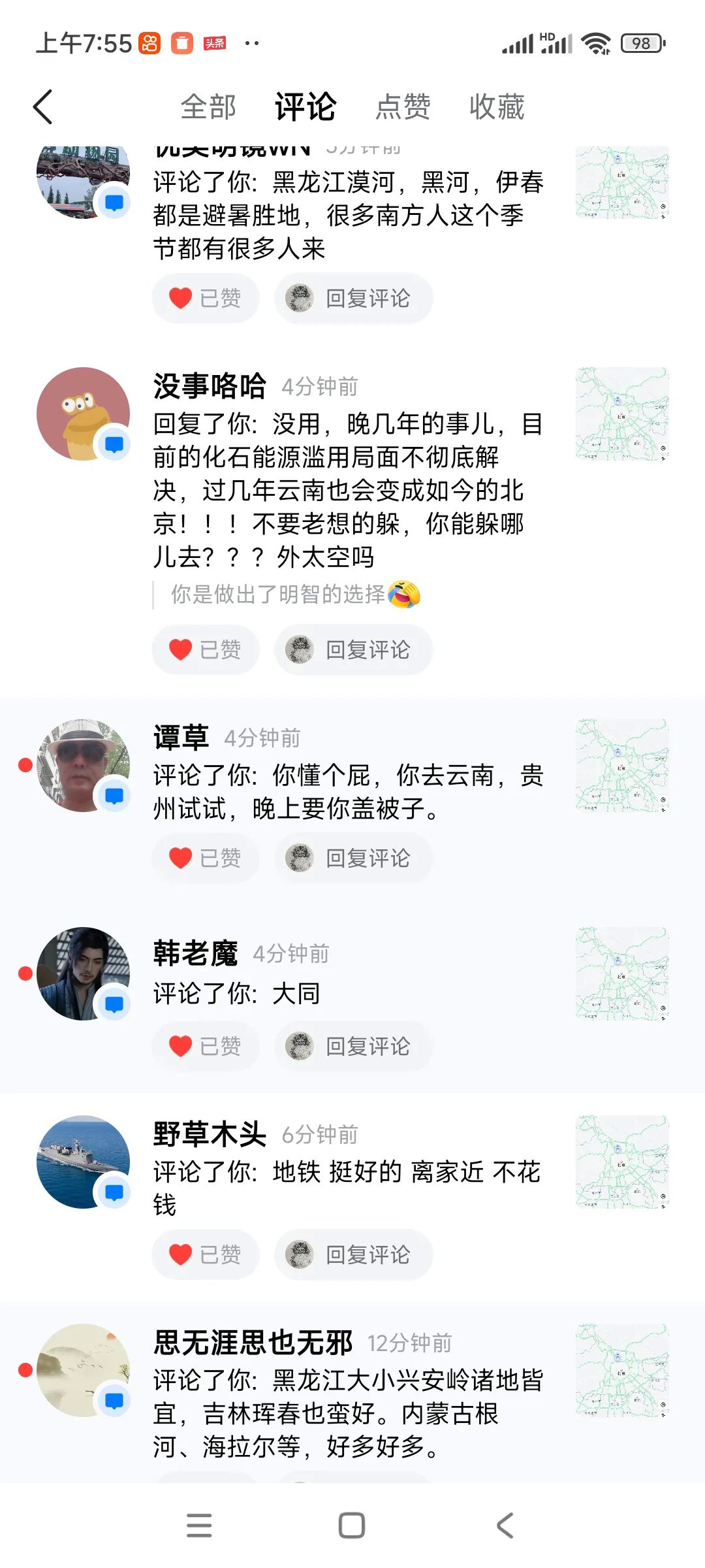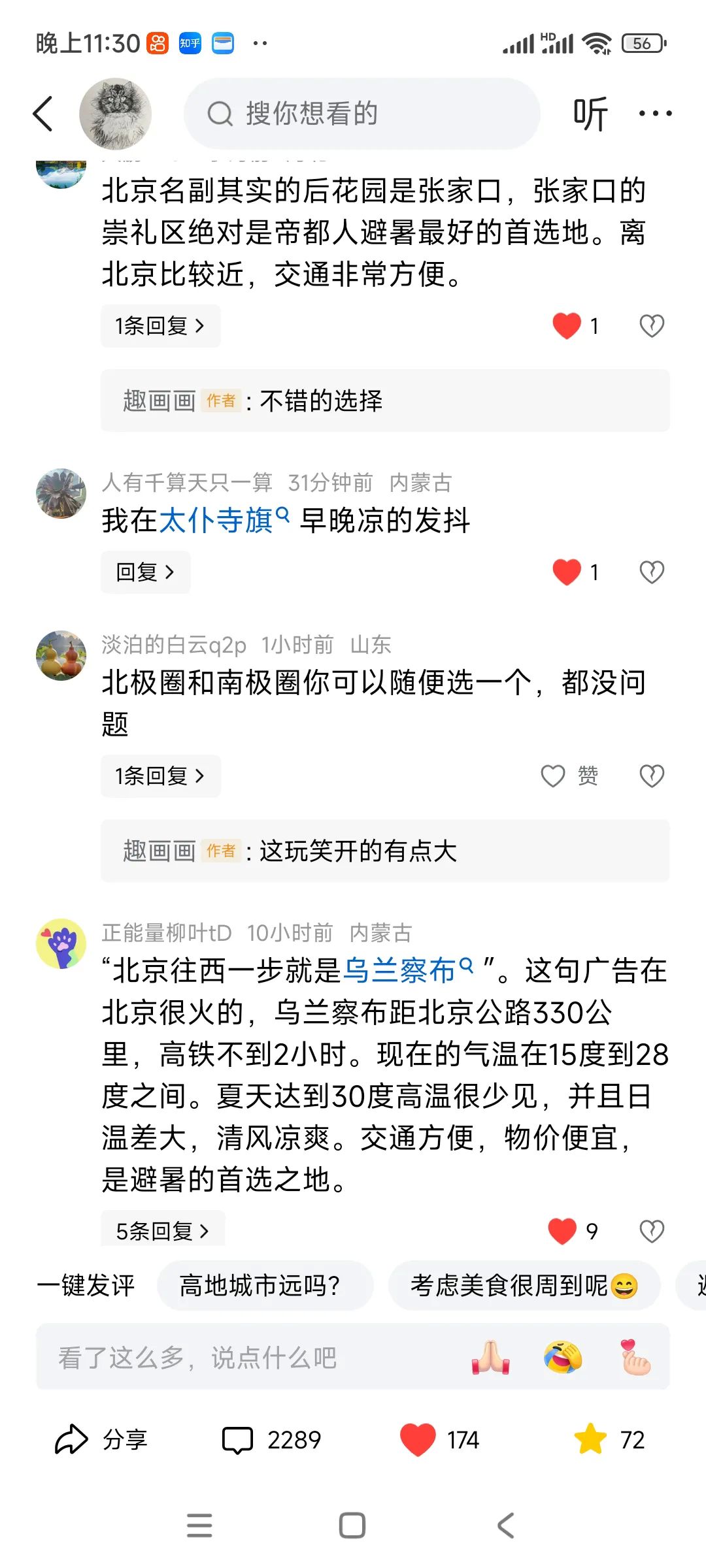 有朋友说晚上不盖被子能被冻醒[捂脸]我看了上篇给我留言的朋友所说的,基本集中在天下大同,美美与共,北京往西一步乌兰察布集宁,不用空调张家口,张北,崇礼,呼和浩特,哈尔滨伊春黑河漠河,葫芦岛,本溪,锦州,吉林,兰州,武威,西宁,新疆北疆,长治,纠结了朋友们。