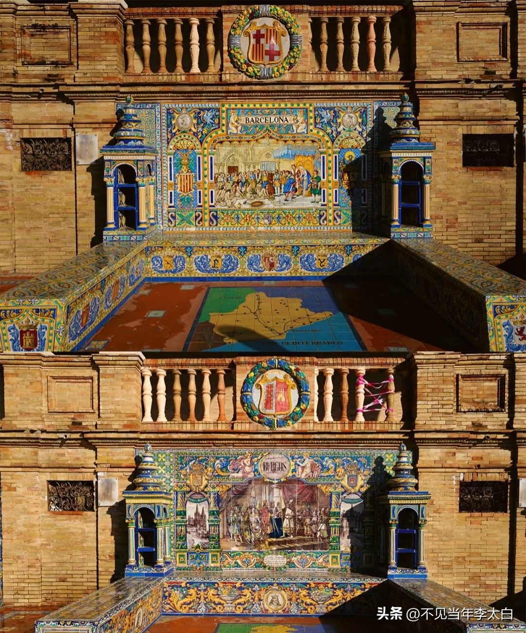 环绕广场的58个彩瓷壁龛,暗藏西班牙各省的"身份图腾":
