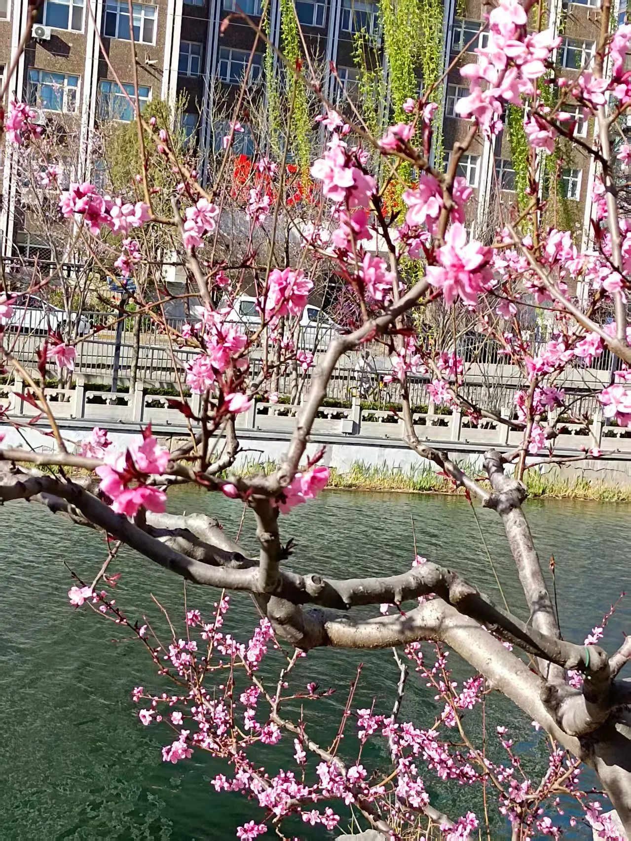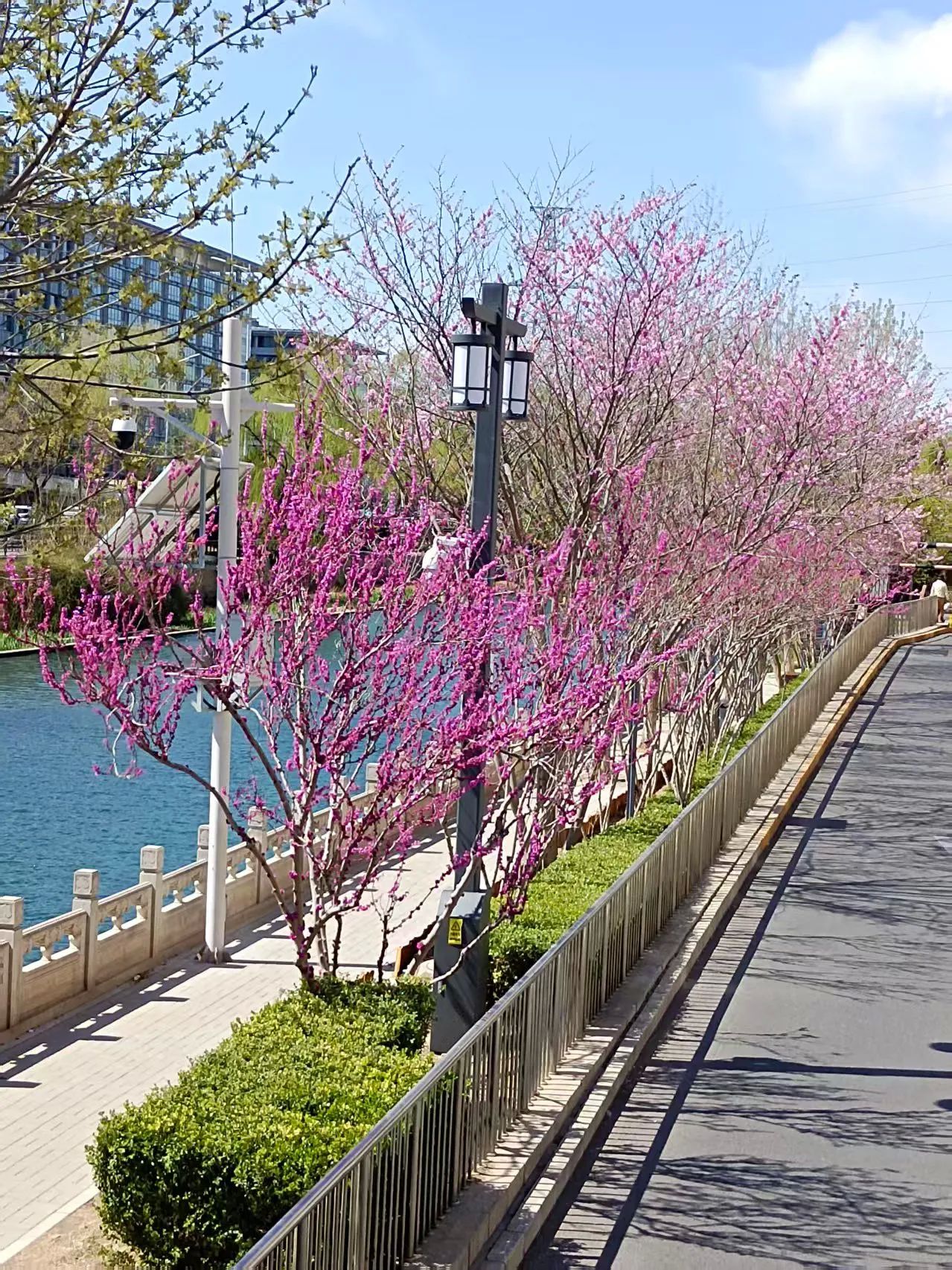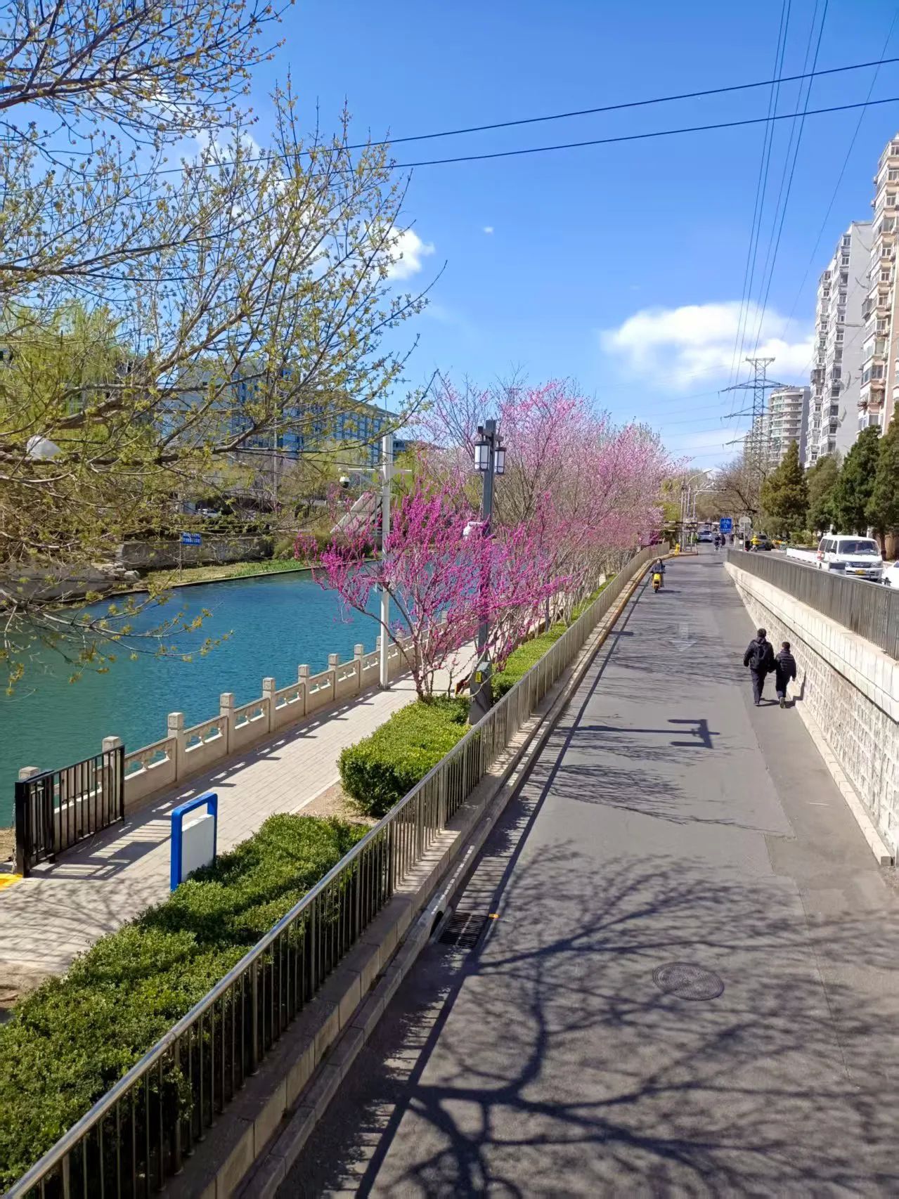 躺了两天,中午11点多下楼溜达,想随便买的食物啥的,此时的二环河边是这个样子的,花红柳绿碧水蓝天,宛如公园。