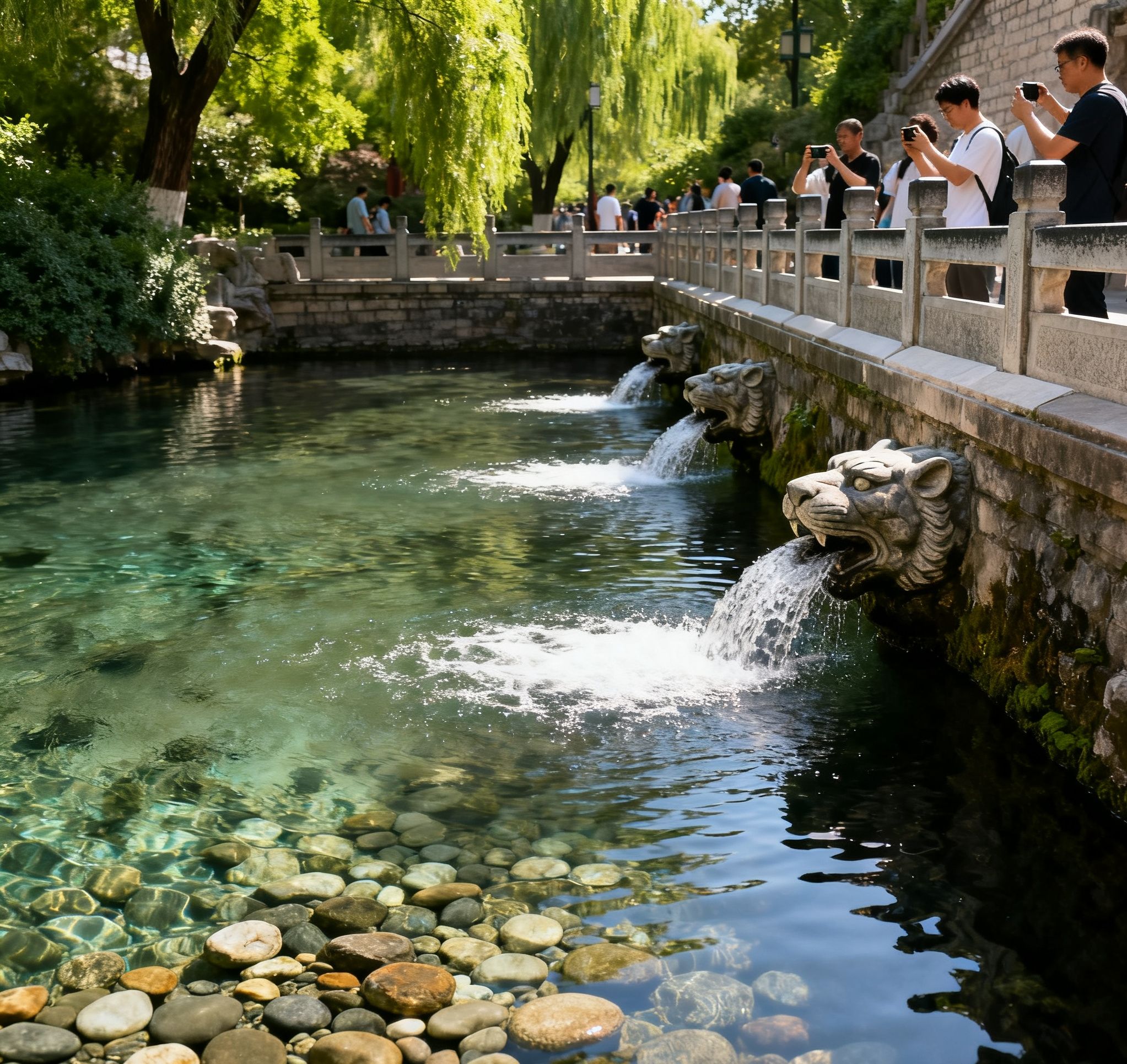 泉水泡茶虽特色,但景区溢价高,建议去超市买"趵突泉"牌矿泉水自泡
