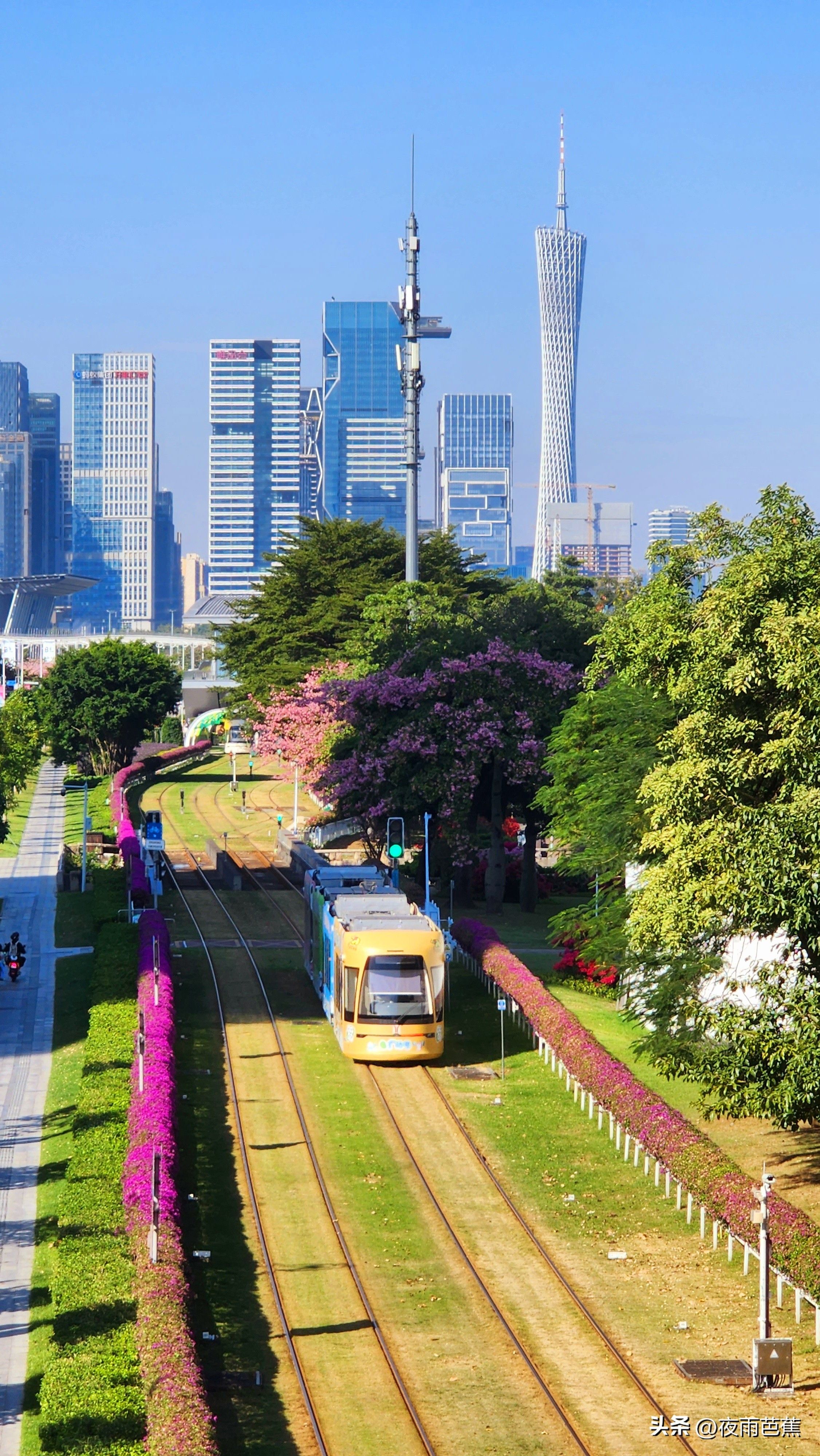 广州有轨电车,珠江畔最美的7公里旅程,从广州塔站至万胜围站共设10个站点,现在