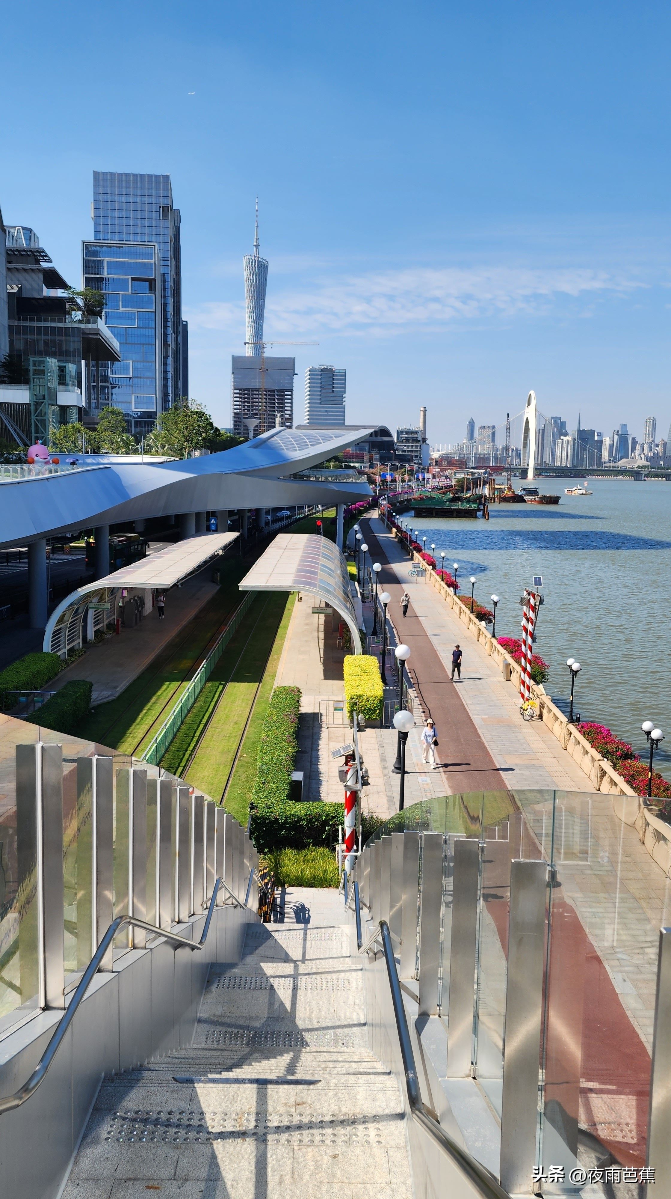 3、南风站,作为广州首个“空中花园”式立体交通综合体,二层平台径直延伸至江边。楼下是有轨电车浪漫的7公里轨道,背后则矗立着微信、阿里巴巴等互联网企业的摩天大楼。平台中央有一处名为“珠江之吻”的景观,侧面望去宛如烈焰红唇,走进其中,实则是一个超大的望江台阶,在此放眼望去,可将广州最繁华的景象尽收眼底。南风站也是拍摄有轨电车与广州塔同框的绝佳新机位。