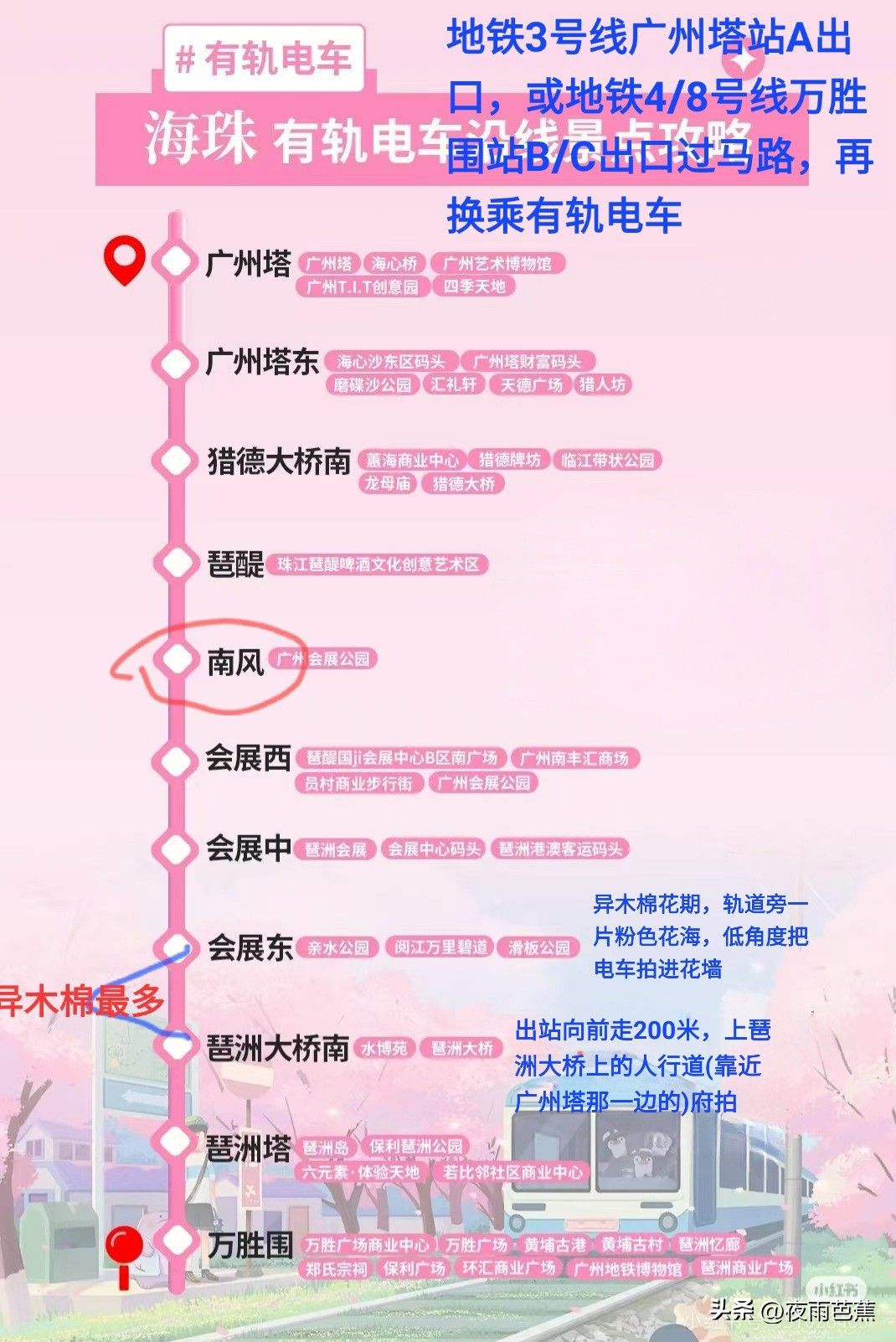 广州有轨电车,珠江畔最美的7公里旅程,从广州塔站至万胜围站共设10个站点。现在,为你解锁其中最美几站的风景: