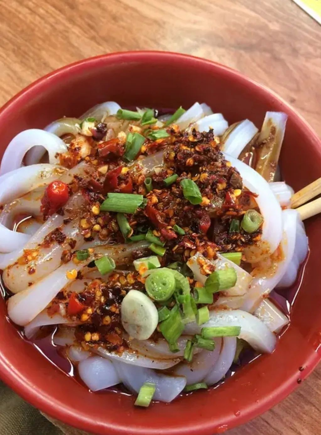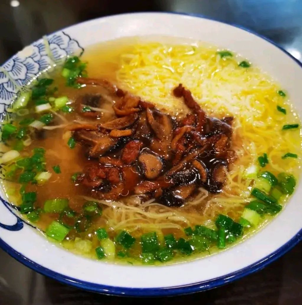四、金丝面,广汉传统美食。细丝面条搭配熬制的高汤,鲜美至极,是清淡饮食爱好者的心头好。面条是现切的鸡蛋面,口感十分细滑,高汤浓郁,渗透到每根面条里,吃后回味无穷。推荐正一涵金丝面,店面位于广汉万寿街,在广汉夜市也开有分店。
