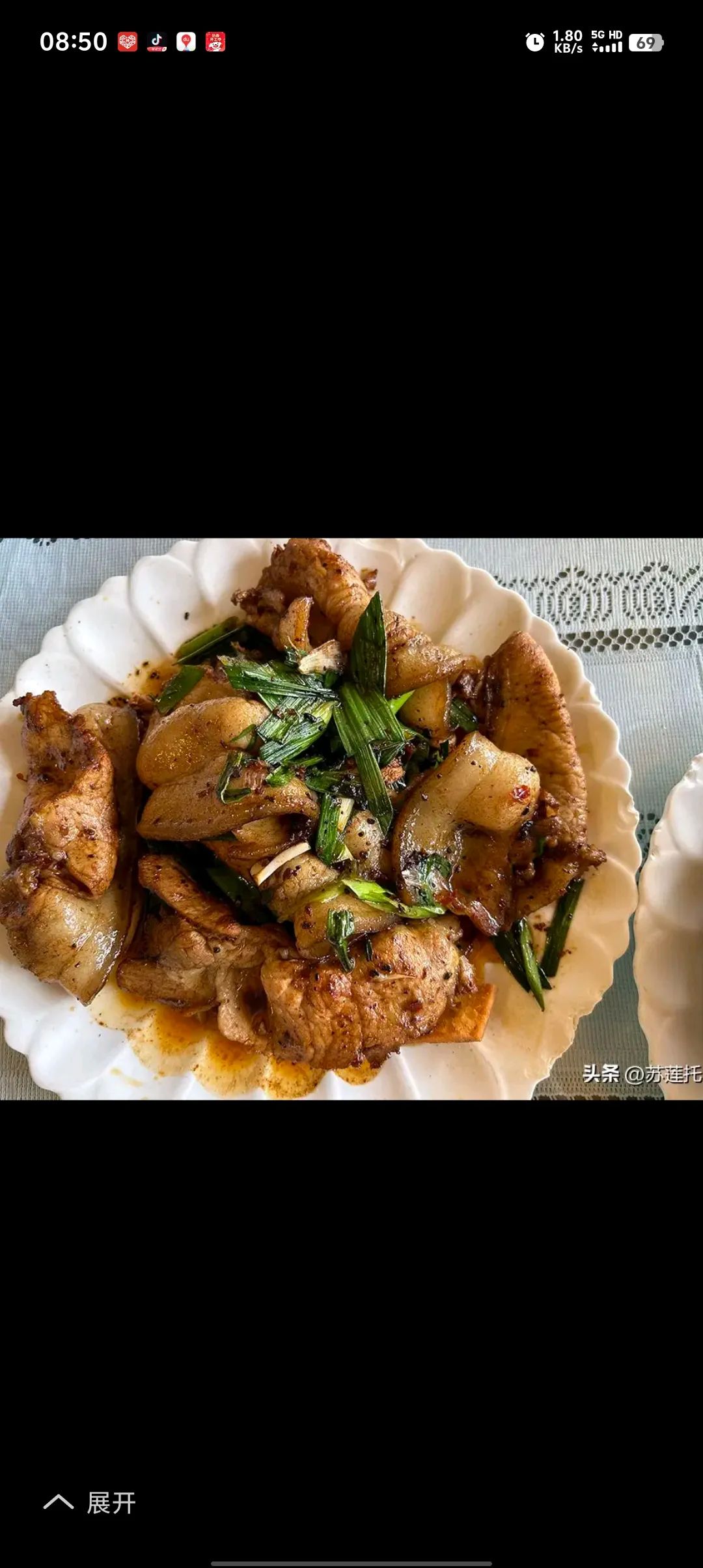二、连山回锅肉,这同样是广汉标志性的美食。这里是回锅肉的发源地,总店位于广汉连山镇,只此一家别无分号,店名叫代术儿连山回锅肉。巴掌大的猪后腿肉炒干,再加上豆豉豆瓣和新鲜蒜苗一同爆炒,入口爆油的爽感让人欲罢不能。好吃是好吃,不过个人感觉价格偏高,一份要一百多。
