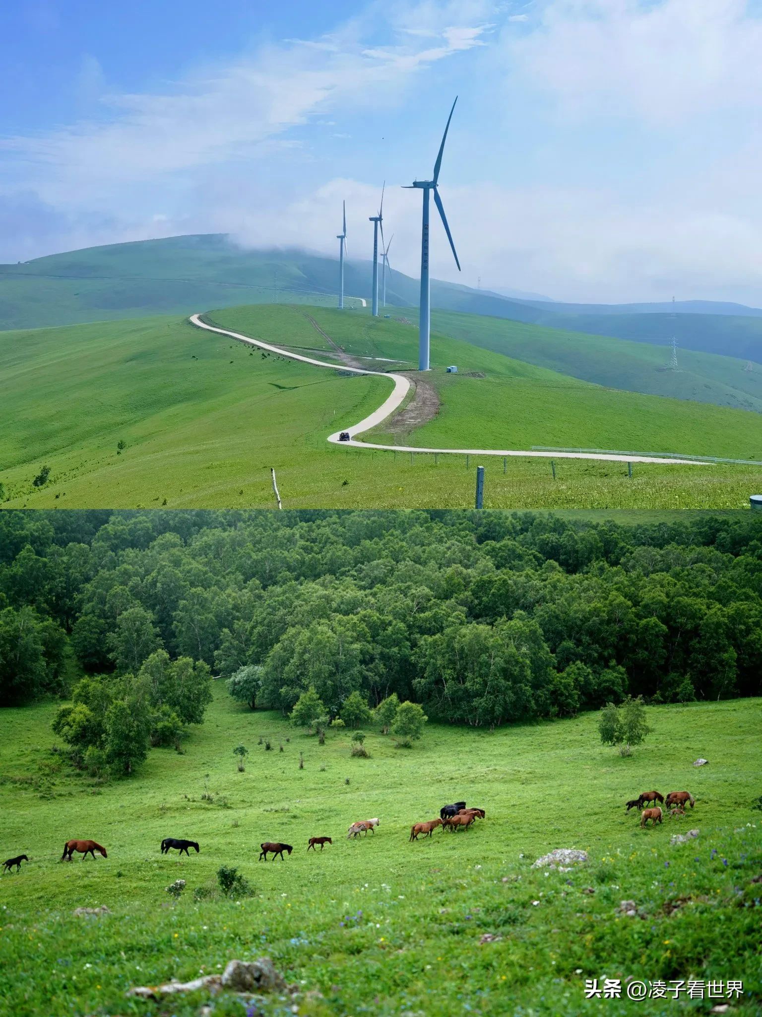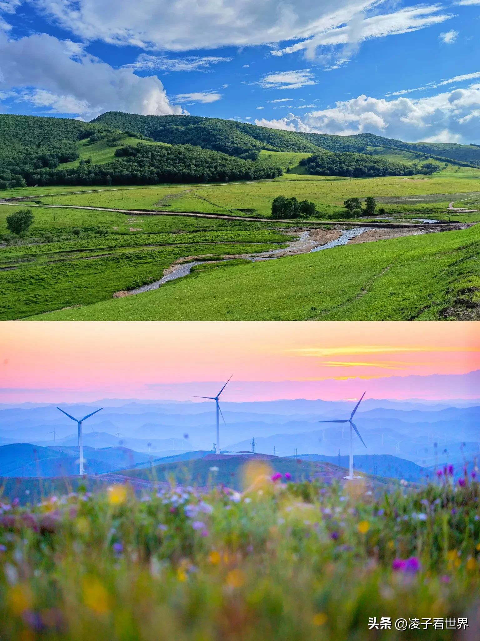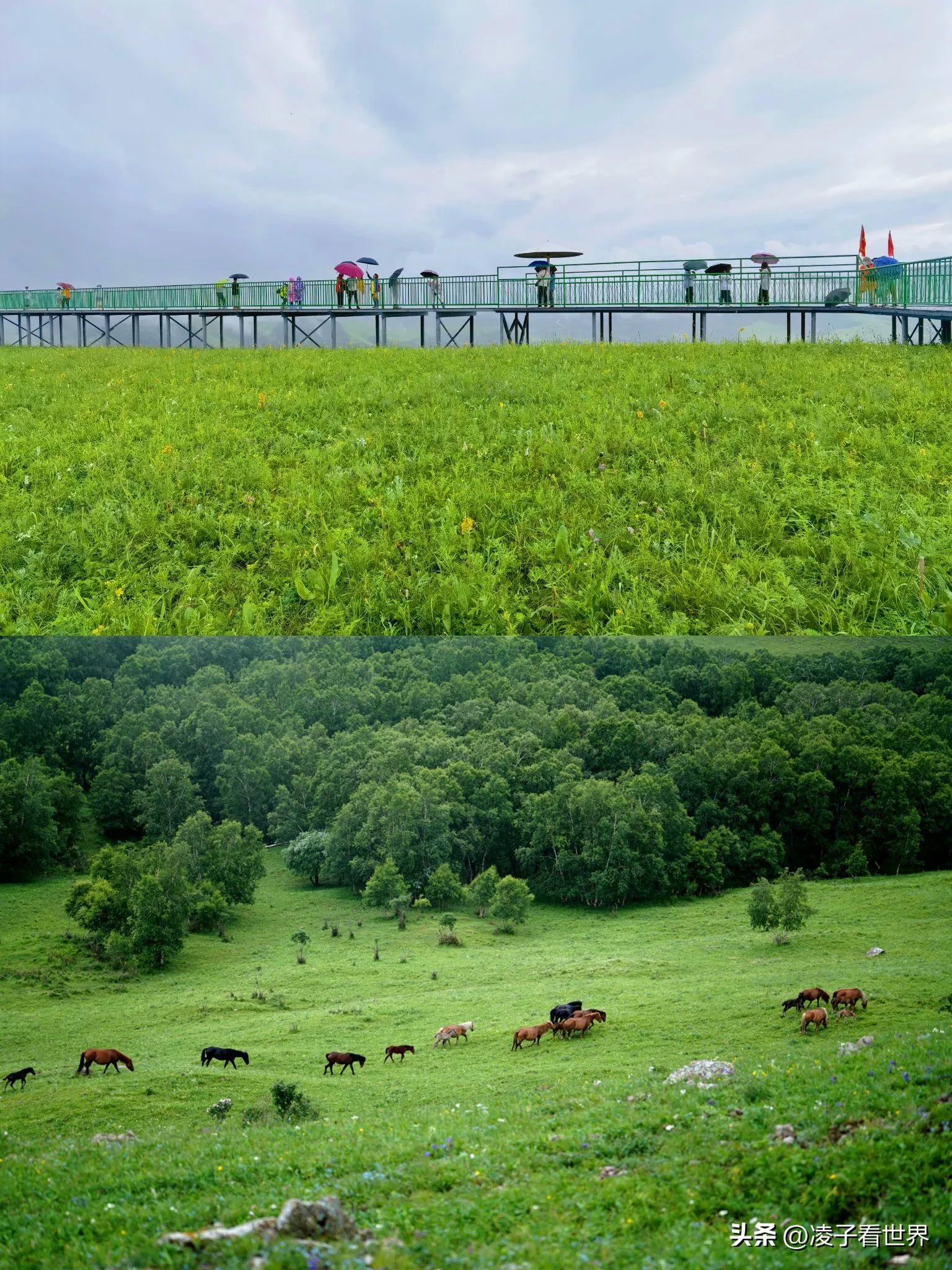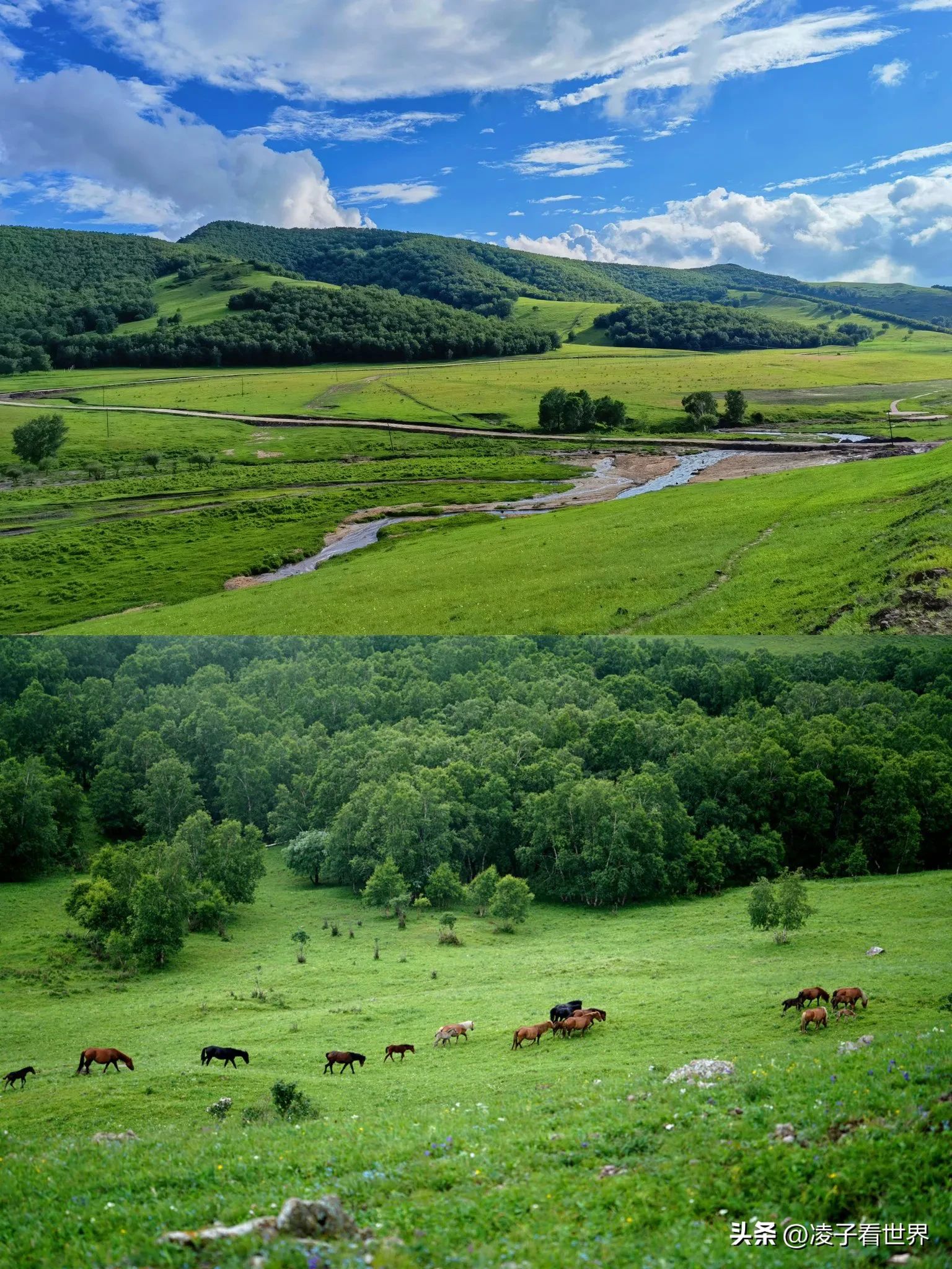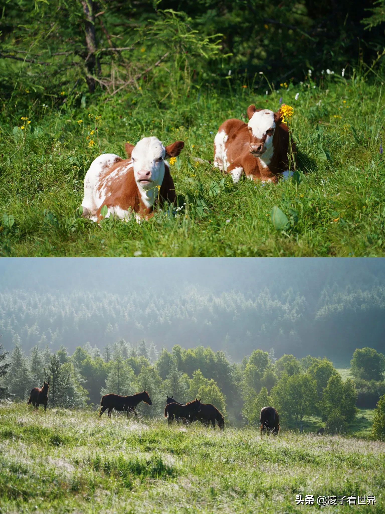 绝美风景:蜿蜒起伏的草原、潺潺的溪流、成群的牛马、遍野的花草,每一处都像是大自然精心绘制的油画,随手一拍都是桌面级大片。