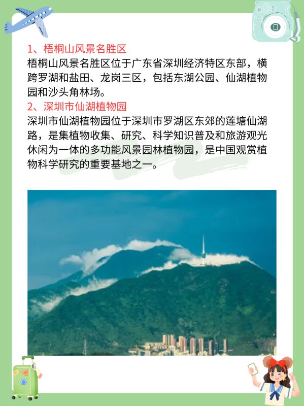 总之,深圳北站周边的这三个景点各有特色,无论是想要体验自然风光、了解历史文化,还是探索科技前沿,都能找到合适的去处。深圳作为一个充满活力的现代化城市,还有很多其他值得探索的地方,比如世界之窗、欢乐谷、大梅沙海滨公园等,时间允许的话,不妨多安排一些时间,深入体验这座城市的魅力。