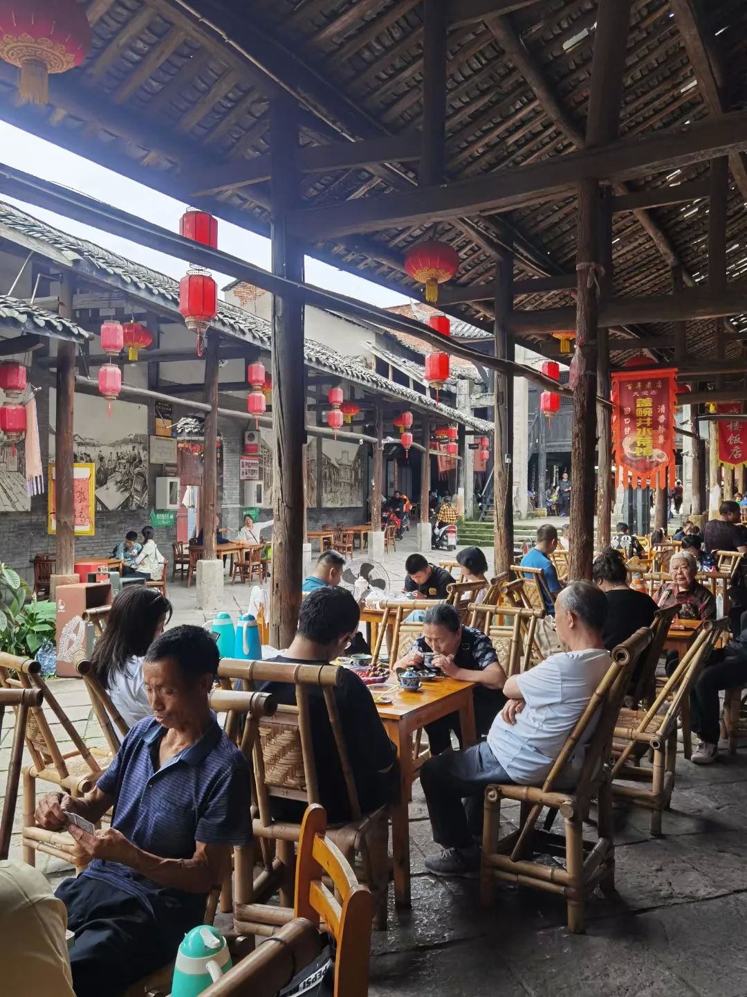 茶馆文化是古镇的灵魂,川剧表演、二胡演奏常在此上演。特色美食如豆腐脑、油炸粑粑、牛肉汤锅等,融合川南风味,八宝饭、叶儿粑等小吃亦不容错过。