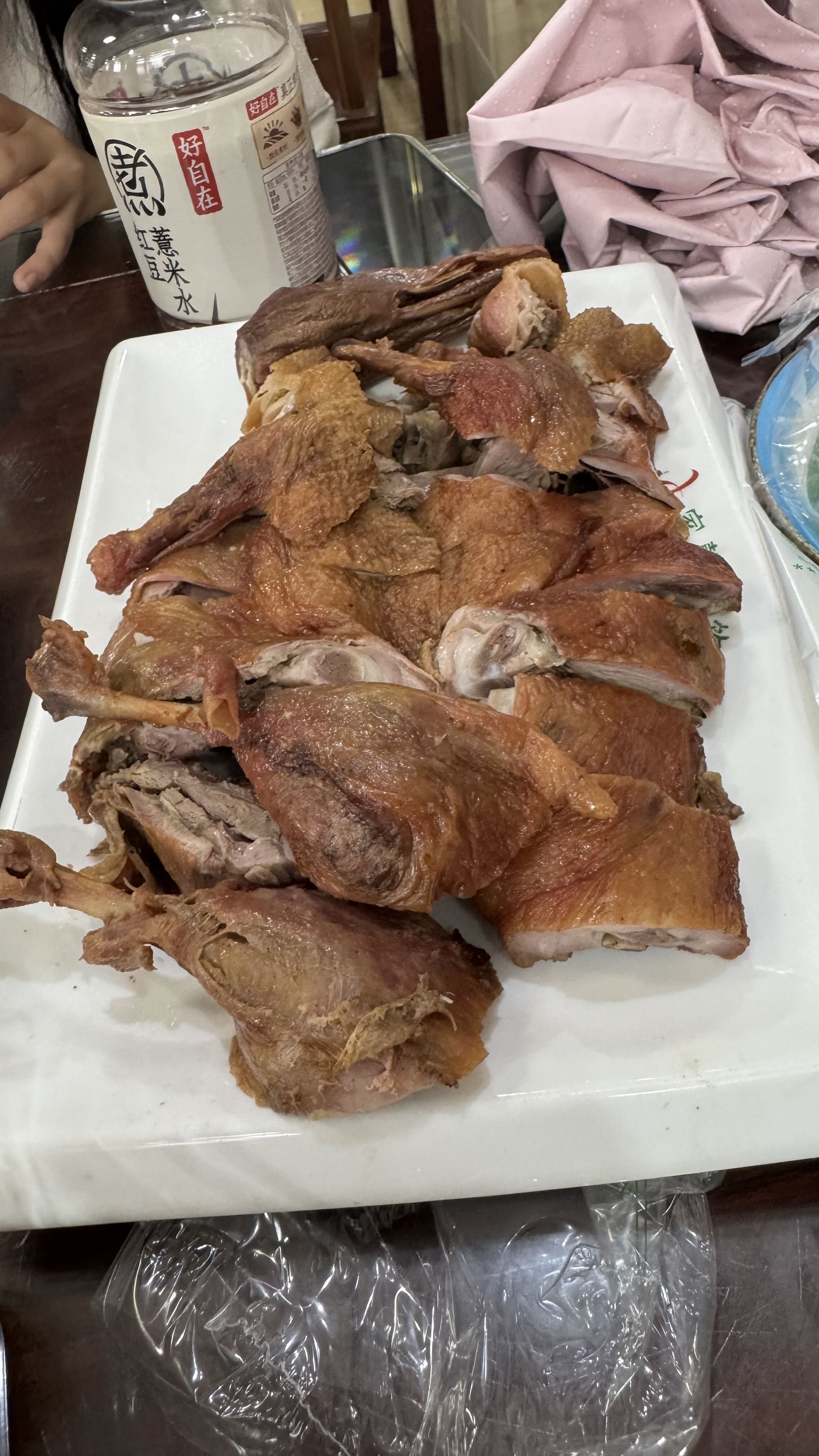 问家人,都差不多吃饱了,她给打包了一份麻鸭。