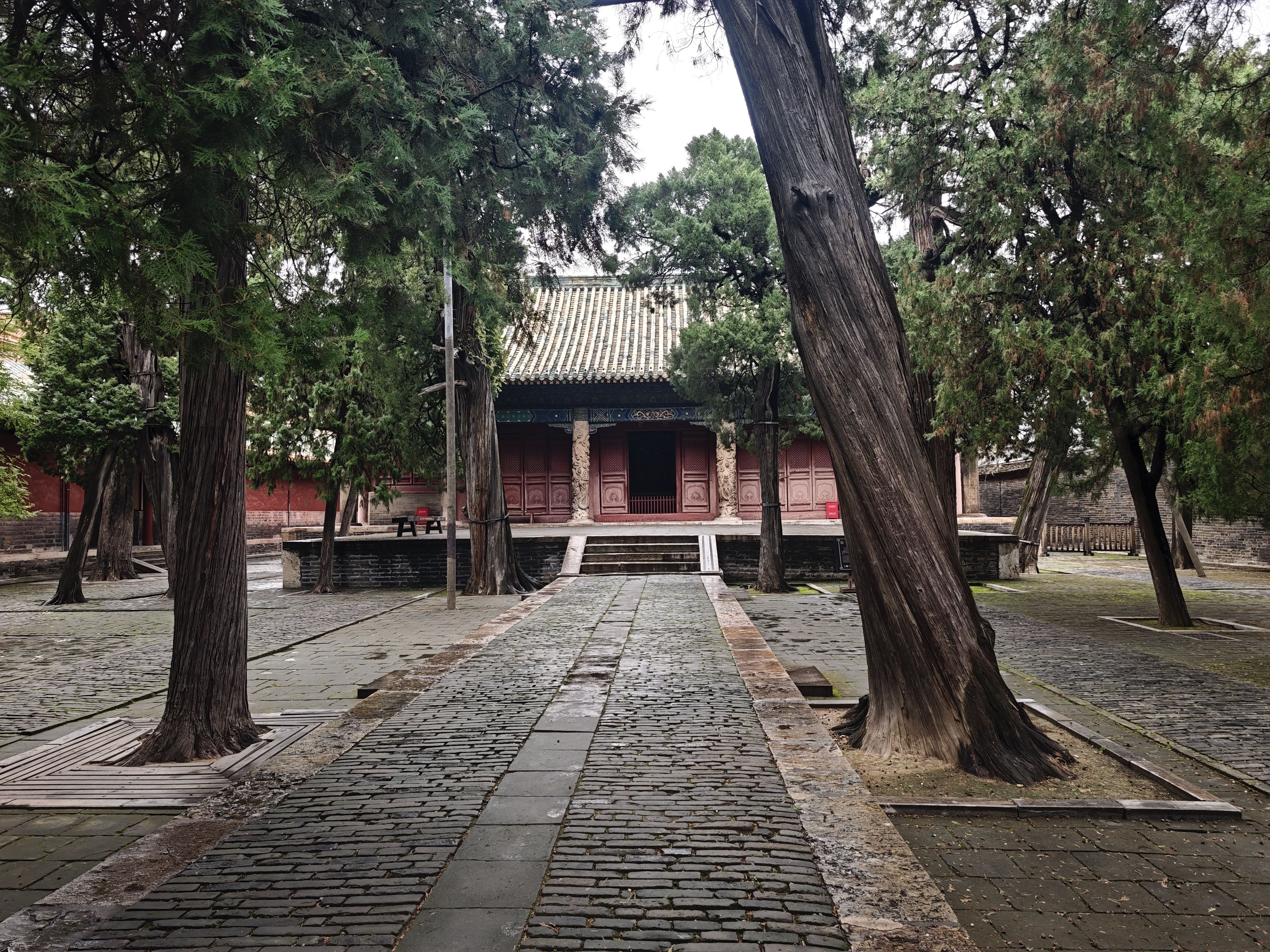 孔庙原本是学生子贡为其建造的小家庙,后来经过历代尊儒王朝的修缮便成为今天的超级无敌大庙。从进万仞宫墙大门到出侧门用时不到五十分钟,基本逛遍了各种石坊,各种门,各种楼,各种殿,各种石碑,各种柏树。大部分建筑应该与孔子没半毛钱关系,倒是后院有口尘封的孔宅故井和周围的参天圆柏或许真与孔子有些关联,建议静坐半晌,以时间换空间来感知。记得在太昊陵伏羲墓时,与那颗长着耳朵的千年柏树对话的场景至今画面感还真实清晰!