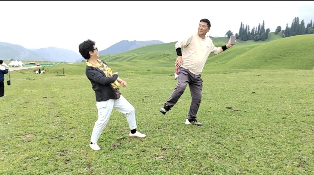 下雨游览不便,决定明天再来。在景区附近“哈萨克第一村”民宿住下,条件一般价钱不贵。晚餐兴致勃勃点了烤全羊,但准备不及改成大盘羊,还有两个蔬菜一盆汤做成双份。在蒙古包里盘腿打坐用餐,有点不习惯。饭菜味道一般且不丰富,结账要1000元,饭吃的不习惯也有点不情愿。当然,这就是旅游。好心态、好心情、好身体、好人生,心态是重要的基础。丛哥拿出电吹管,邹哥拉起二胡,老婆在房间练手风琴,大家引吭高歌,吹拉弹唱可谓齐备。女的打起自带小麻将,方寸之间跟卡盯碰手法娴熟。快乐终究自己决定
