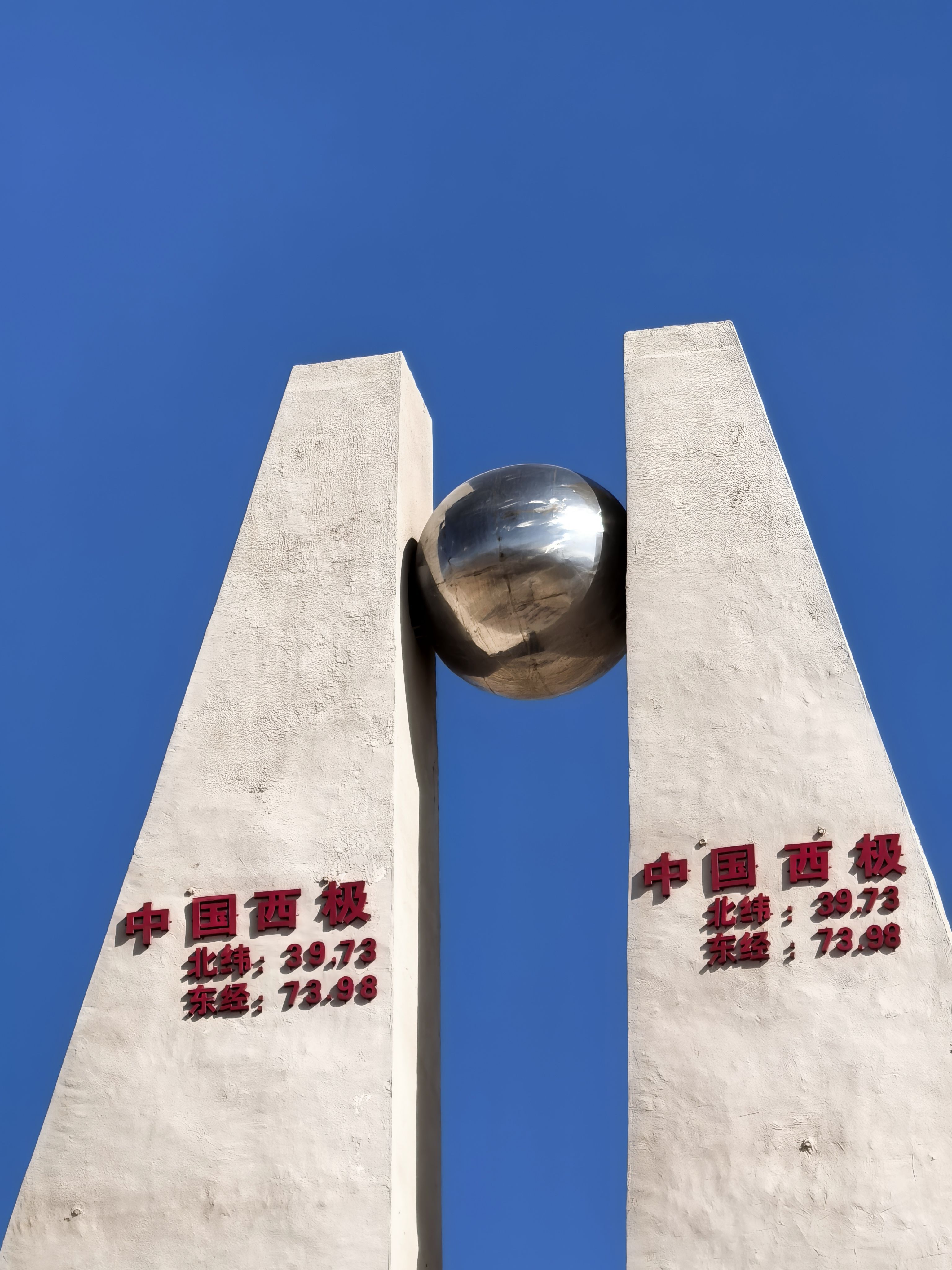中国西极石碑位于新疆乌恰县,在喀什的西北方向大约两百多公里,是中国陆地最西端的地理标志性建筑,象征着祖国最后一缕阳光落下的地方。