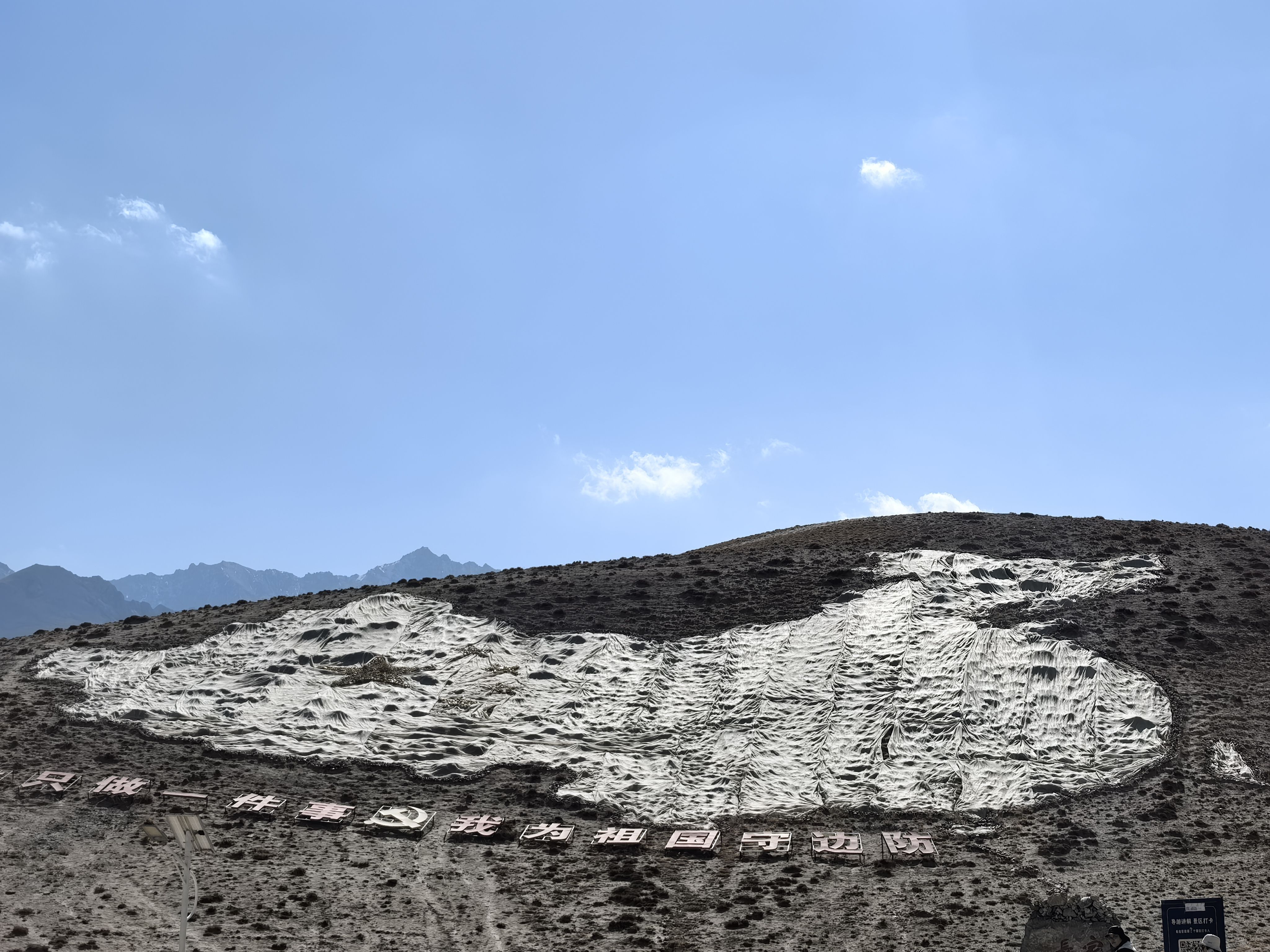 上到山上,高大的石碑威严的耸立在眼前,上面刻有中国西极字样,碑文上写着“一生只做一件事,我为祖国守边防”,四周的五星红旗迎风飘扬,看了让人觉得非常震撼。