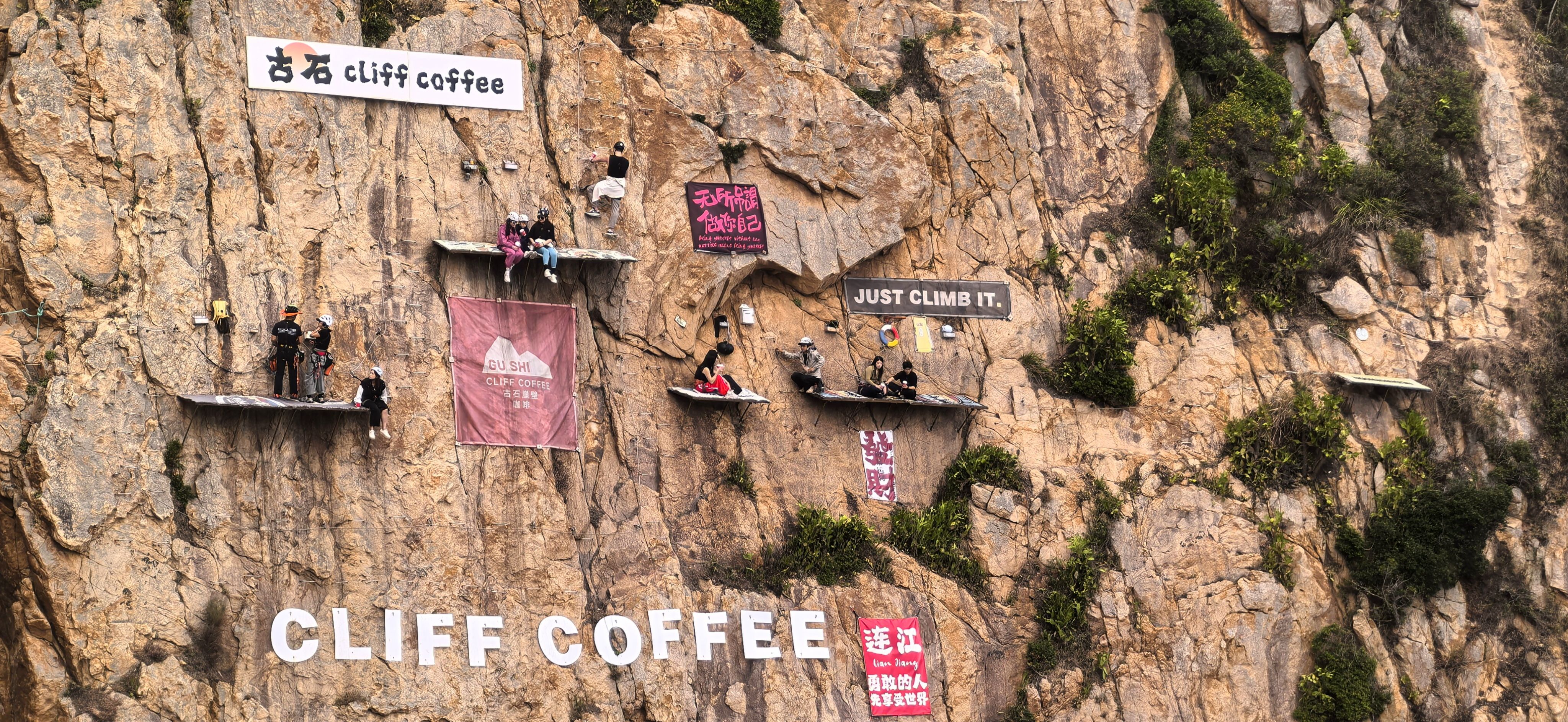 海岸有70米高的陡崖垂直入海,引得不少年轻人投身到“崖壁咖啡”的旅游项目(崖壁上观海喝咖啡、一杯400元),去寻得一份惊险刺激的享受。