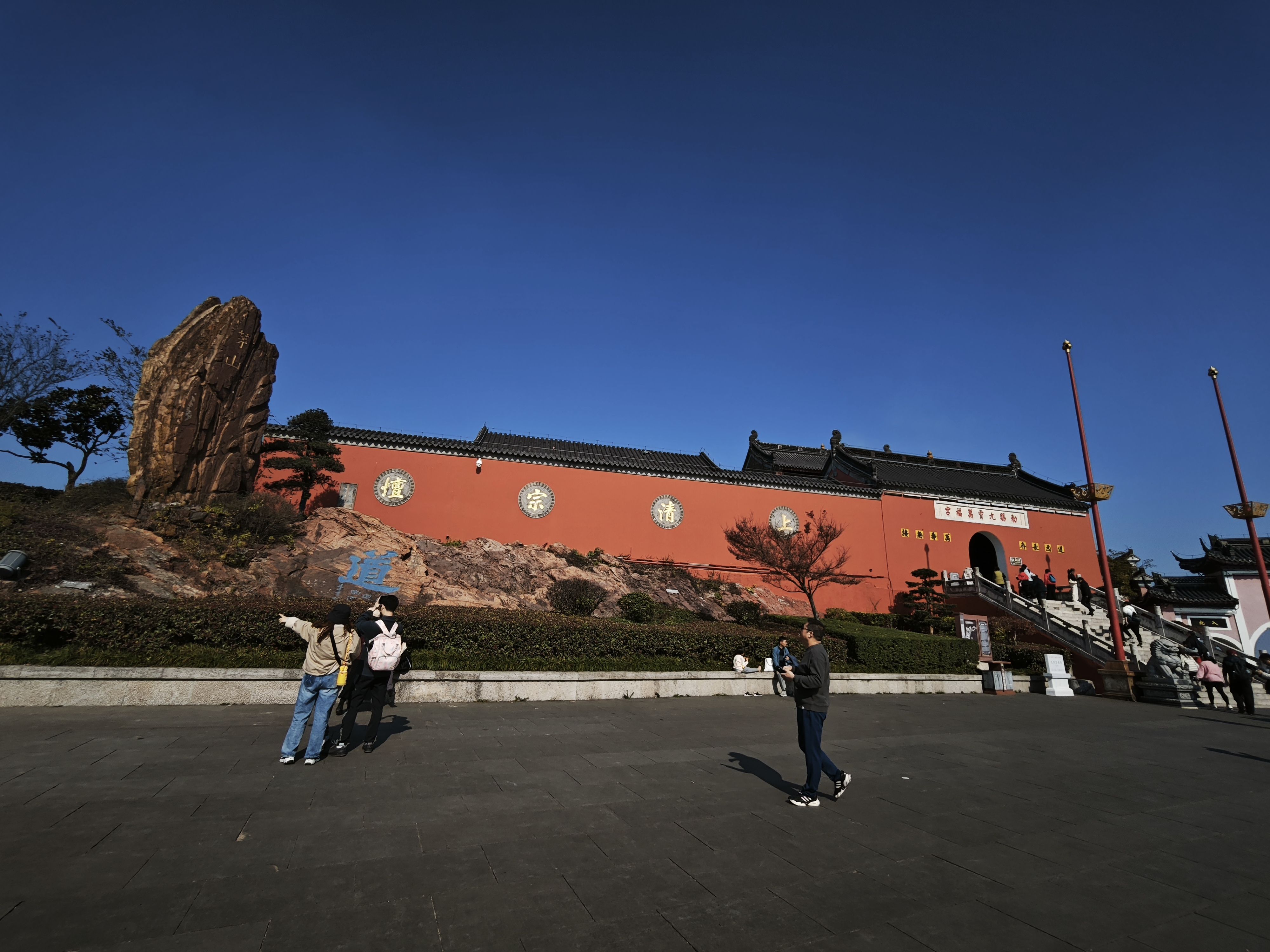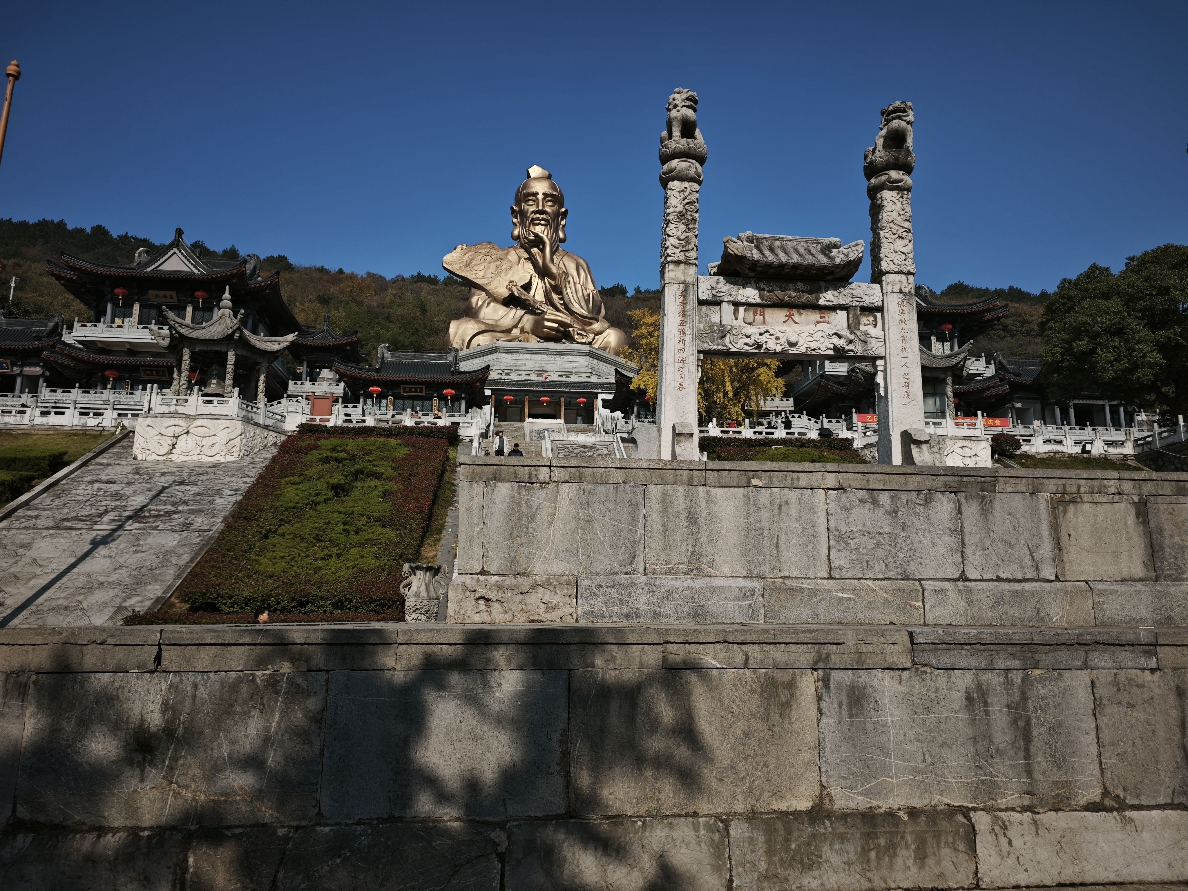 昨天早上,从家门口坐地铁二号线至马群然后继续转S6号线到句容高铁站,再从句容高铁站乘句容至镇江茅山风景区的公交车,全程用时三个小时,到了茅山风景区已经是上午十点钟了,茅山是著名的道教圣地,中国道教正一派“上清派”发祥地,是江南的道教中心,素有“第八洞天,第一福地”之美称。茅山也是神圣的革命圣地,是我国著名的六大山地抗日根据地之一。矛山也是全国红色旅游经典景区之一,是全国爱国主义教育示范基地。茅山自然风光清新秀丽,景色迷人,有九峰,十六泉,二十六洞,二十八池等美景。我由于时间关系,只游览了九霄万福宫,元符万宁宫,华阳洞和仙人洞,苏南抗战胜利纪念碑,新四军纪念馆,我从景区大门徒步登山入口,一直沿着登山道往最高点九霄万福宫攀爬,九霄万福宫又称顶宫,坐落在大茅峰顶,为茅山“三宫五观”之首,整体建筑坐北朝南,东西对称,依山借势,雄伟壮观。在九霄万福宫稍作休息,补给能量,此时我内衣已经湿透,山风一吹,反而寒颤不已,感紧继续走路,走不多远,就看到了有景点接驳车,因为景点之间路程较远,我就跟着人们一起上了车,来到了下一个景点元符万宁宫,这个景点坐落在茅山积金峰,与大茅峰遥遥相望,这里有高33米.重106吨,由226块青铜板焊接而成的露天老子神像,这个铜像入选了吉尼斯世界纪录,应该是茅山风景区的主景区。(未完待续)