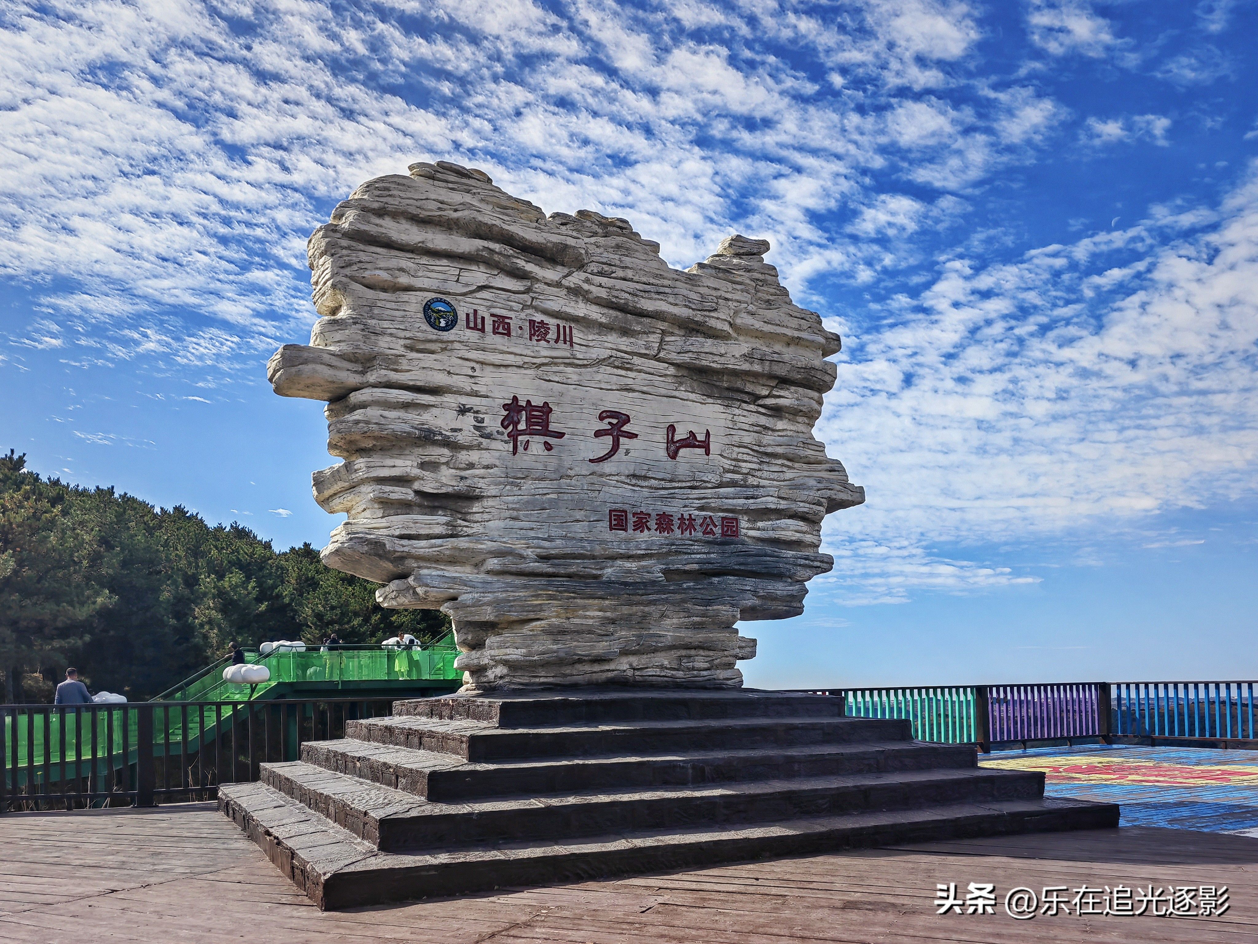 棋子山观景平台不远处可见棋子塑像,估计还会有一些棋子的历史文化遗存介绍。观景台旁边的路口有一条岔路标示通往高老庄景区,估计是些人工打造的景观,便没有进去游览。