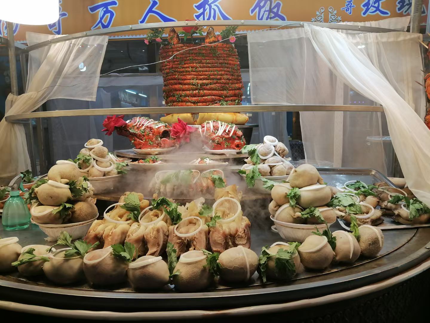 大名鼎鼎的烤全羊,色泽金黄,外酥里嫩,是宴席上当之无愧的王者;炭火上的烤肉串,肥瘦相间的羊肉在“孜然与辣椒面的交响”中滋滋作响,是街头最豪迈的风景;而劲道爽辣的炒米粉,更是用独特的味道征服了无数年轻人的味蕾。