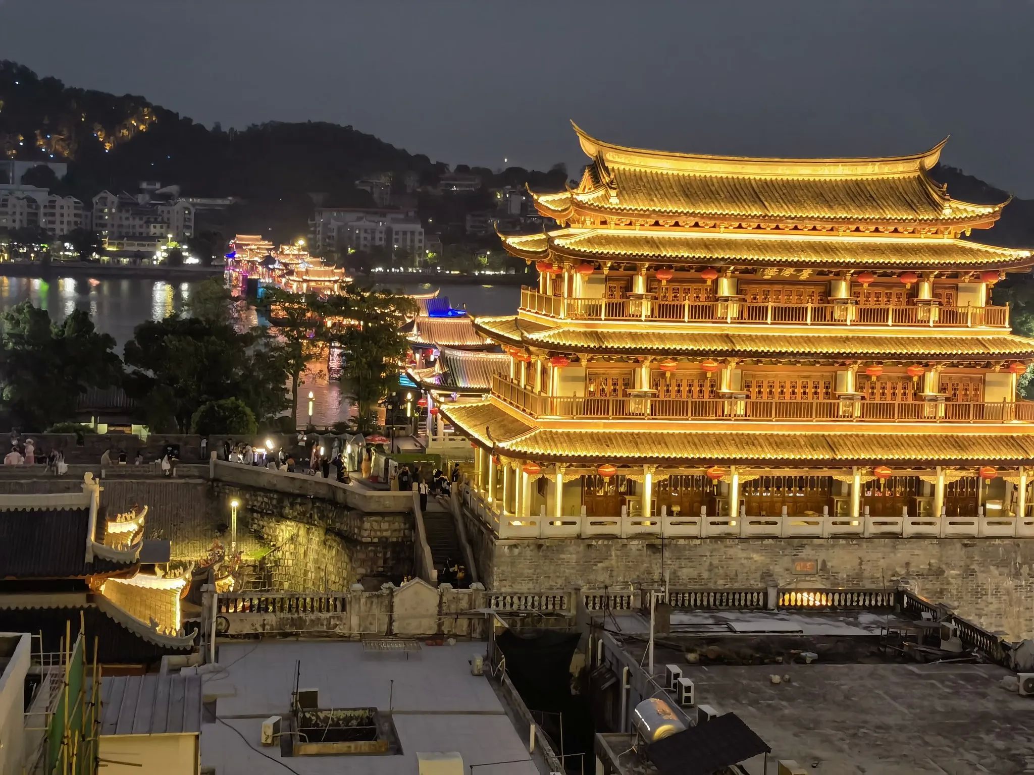 - 夜晚灯光秀美轮美奂,是潮州的地标性建筑。