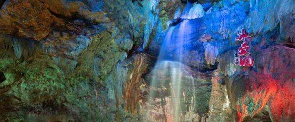 洞口的岩石上刻着几条龙,栩栩如生的,进洞必须躺在小船上顺着水路走,工作人员还特意提醒不能抬头不能拍照不能摸岩石,规矩挺多。