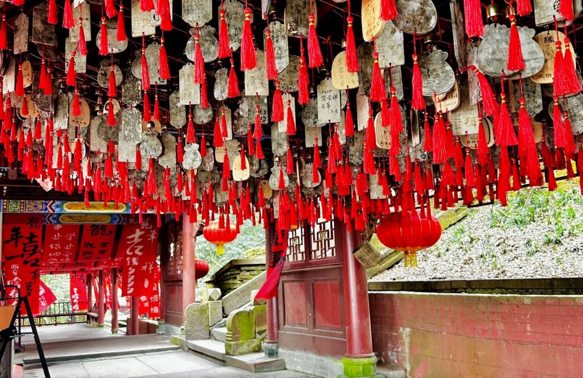 我选择的是淡入路线,先乘缆车到达天盖寺。随着缆车缓缓上升,整片山景在脚下铺展开来,满山的绿意让人心旷神怡。下了缆车,穿过古色古香的油纸伞长廊,仿佛穿越回了古代。漫步在皇茶苑,还能看到当地茶农在茶园里忙碌的身影。