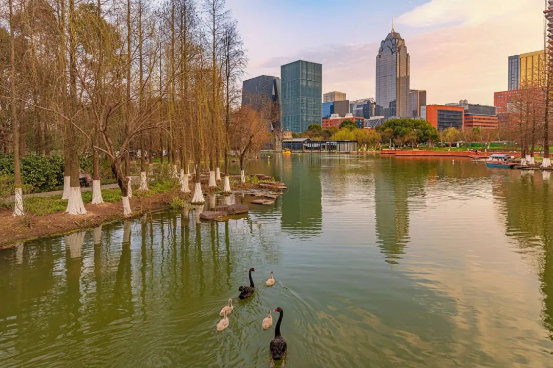 冬天鄞州公园有水杉和黑天鹅,水杉是红色的,看上去热烈又温暖,黑天鹅在玩耍的时候脖子还会摆成爱心的形状。公园每个季节都是不同的景象。是周边市民休闲娱乐的好去处。
