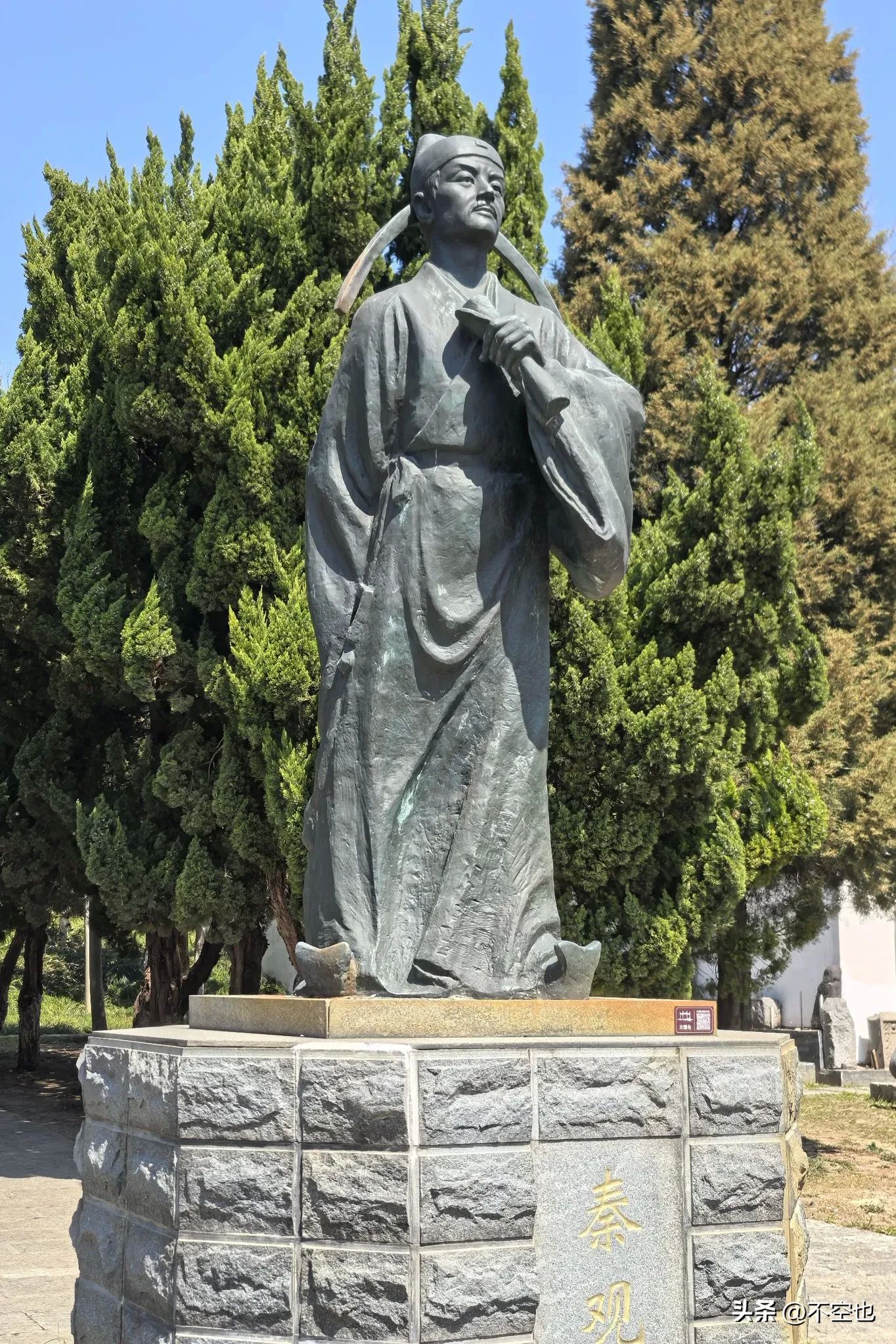 文游台门前,一组“四贤聚会”的群雕,还原了苏轼、秦观等大文豪当年雅集论文的场景。踏进正门,首先映入眼帘的是一座秦观的铜像,身姿清瘦,风流倜傥,微扬的衣袂似还留着"两情若是久长时"的余温。中学时初读宋词,除了苏轼的《念奴娇》《水调歌头》,便是秦观的《鹊桥仙》,不想今日同时与二位在此隔空相聚了。