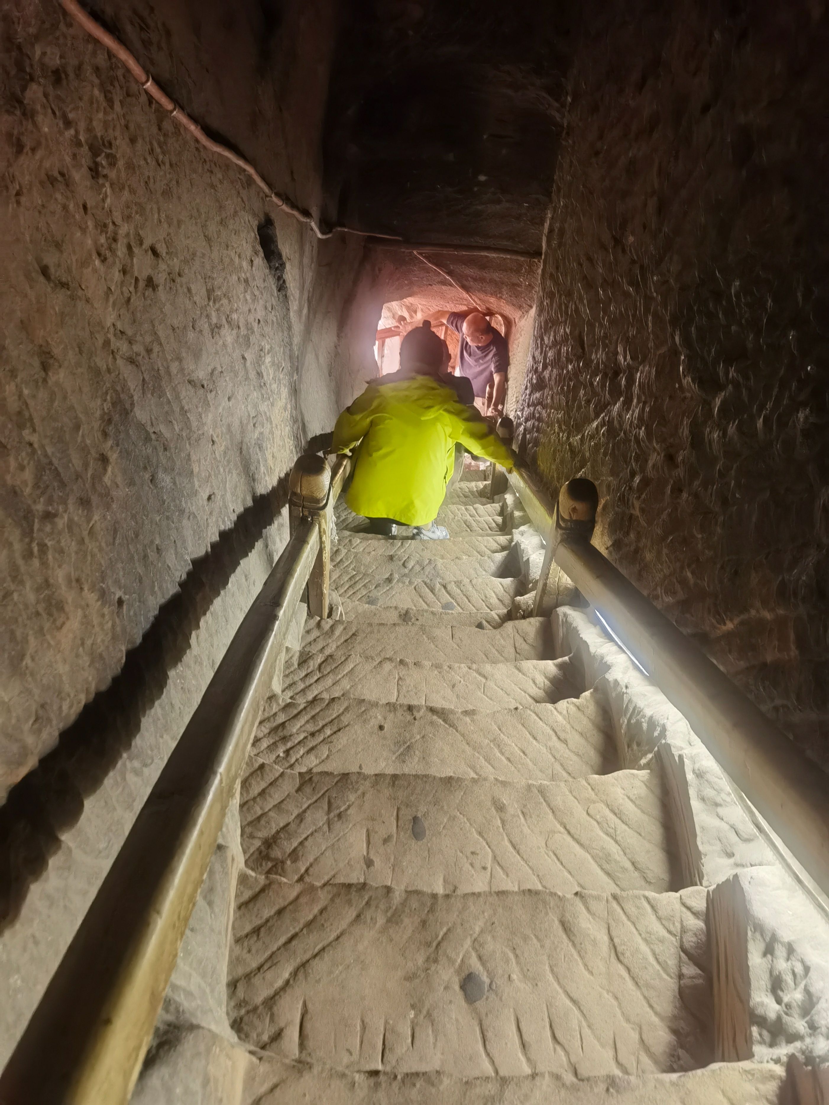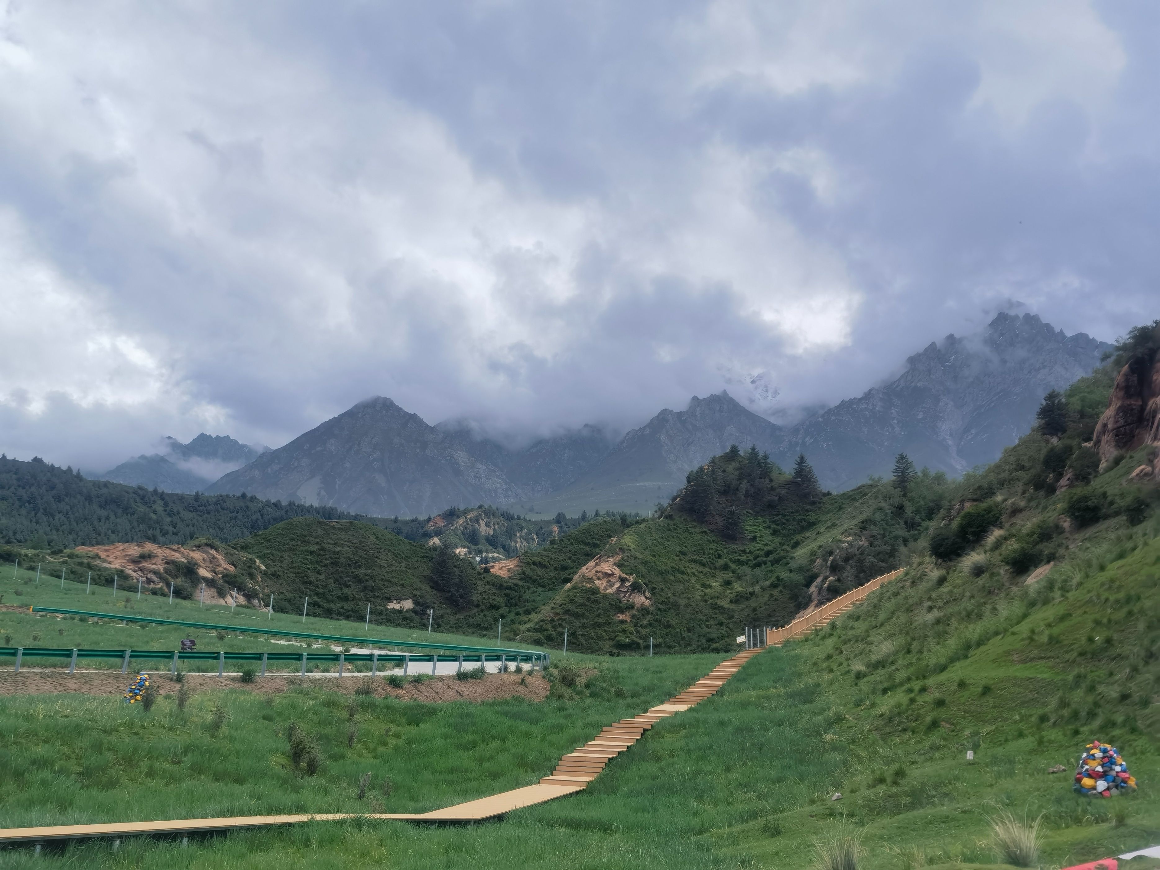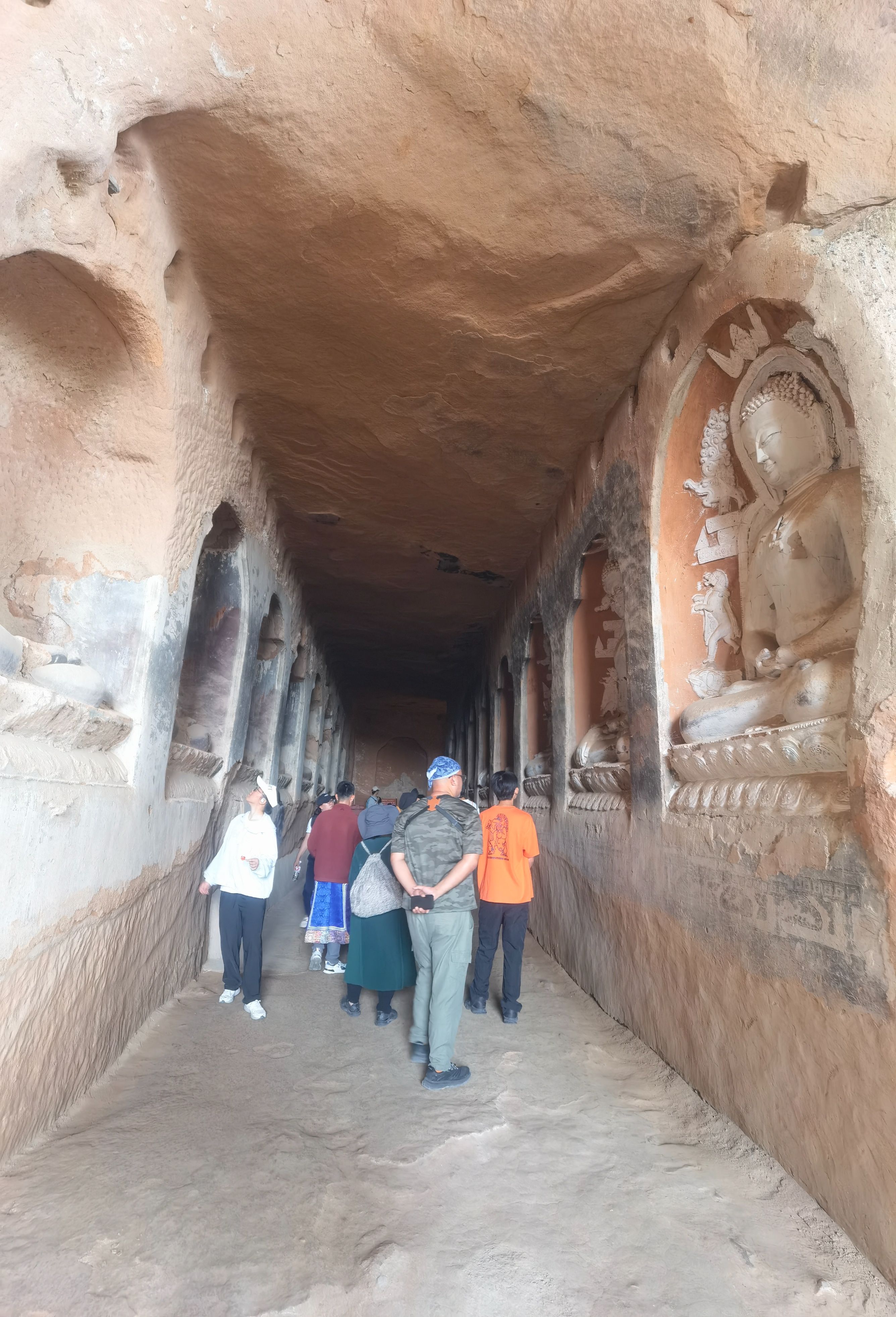 7月5日(周六,出行第二十七天),早晨天气凉爽,我们按计划上午前往民乐县,在县城边看到一“古塔”,停车走进寺庙,原来是“圣天寺”,寺庙正在修缮,没有游人,我们转了一圈儿就走了。当我们驾车走在林荫小道,偶然发现远处的高山隐隐的雪山,看到路边大片的油菜花时,很多人停车拍照,我们也停车加入欣赏美景的队伍,中午就来到了“马蹄寺景区”(国家4A景区,门票74元,60岁半价优惠),景区停车场很大,经过一段坡道,两侧都是商铺(纪念品、食品、小吃),就来到游客中心购票,进入景区大门乘坐观光车(往返13元)可去三个景点。下车走了800米看到了“马蹄寺石窟群″,一下子把我们“震撼”到了,来之前我们原以为只是一座藏传佛教的寺庙,没想到是精美的石窟,与山西“悬空寺”不同,先人们的智慧才智与能工巧匠打造而来,眼前看到一个绝壁上修建了几处寺庙,看到上边有人在走动,我也好奇地想上去一探究竟。我跟随着参观人流,一个一个的攀爬、钻洞,最为经典的是“三十三天石窟”,庙与庙之间是在山体里掏挖的梯子,有的直上直下,有的只能一人通过,虽然感觉有些“惊险刺激”,但更多地是内心里佩服这一奇迹般的“创举”,在路边还看到一只硕大的“土拨鼠”等待游人的喂食,我们乘坐观光车继续游览千佛寺、格萨尔王殿等两个景点,然后乘坐观光车返回停车场就离开景区了。几天下来,脑海里还时常回荡着攀爬“三十三天石窟”场景。隆重建议只要来张掖的朋友,千万不要错过“马蹄寺”。