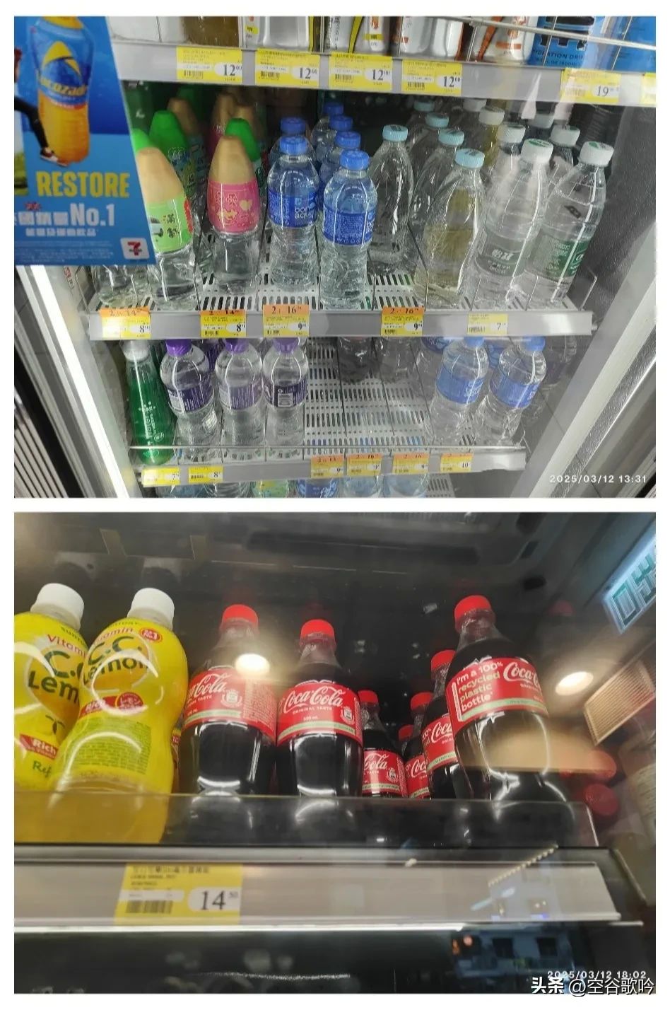 一路特意留意了一下矿泉水、饮料这类,看到最便宜的矿泉水是居民区街边的一家中型超市里的怡宝3块一瓶,7-11里最便宜的矿泉水居然要7元,可口可乐居然要14.5元[捂脸][捂脸]