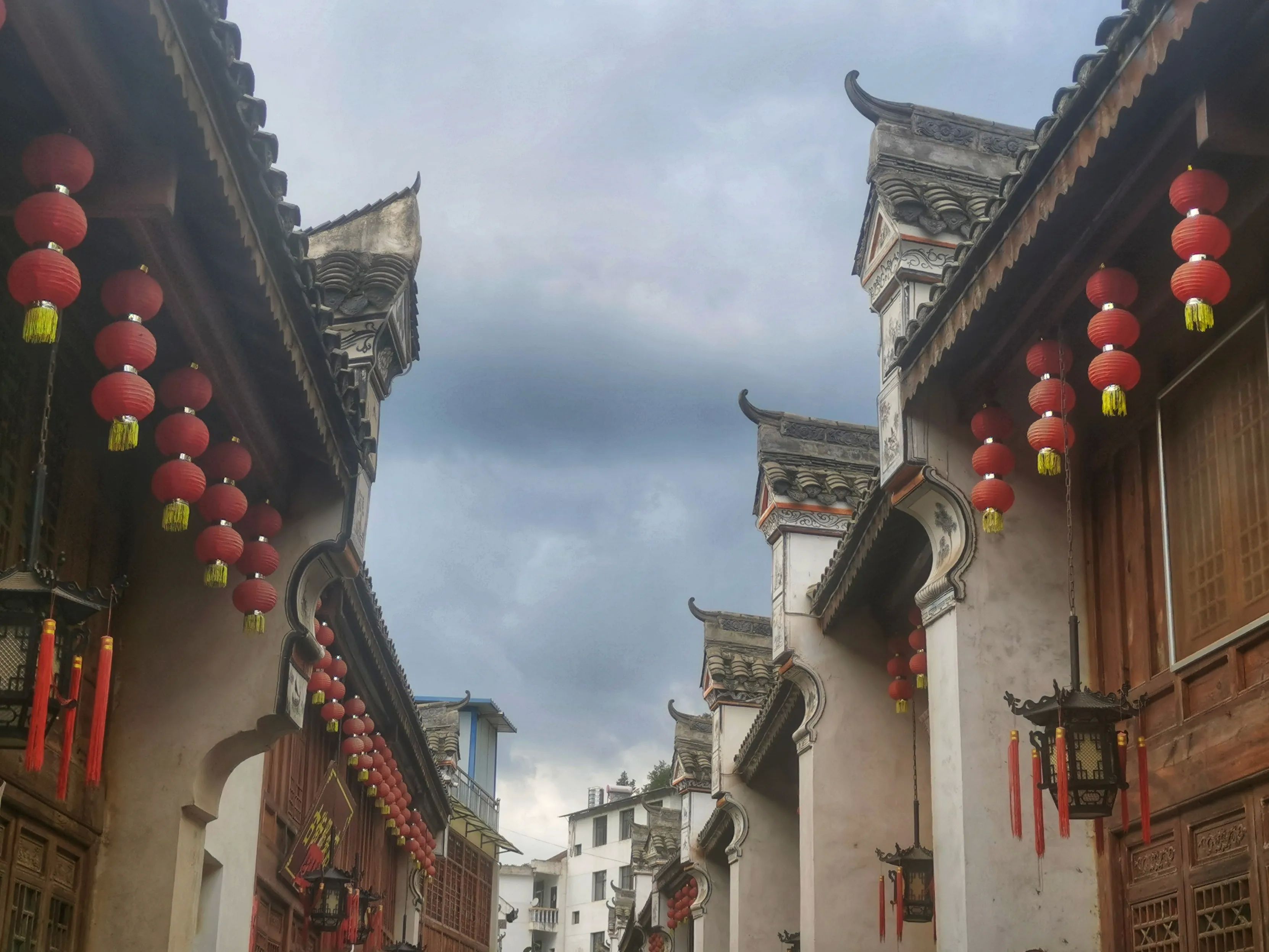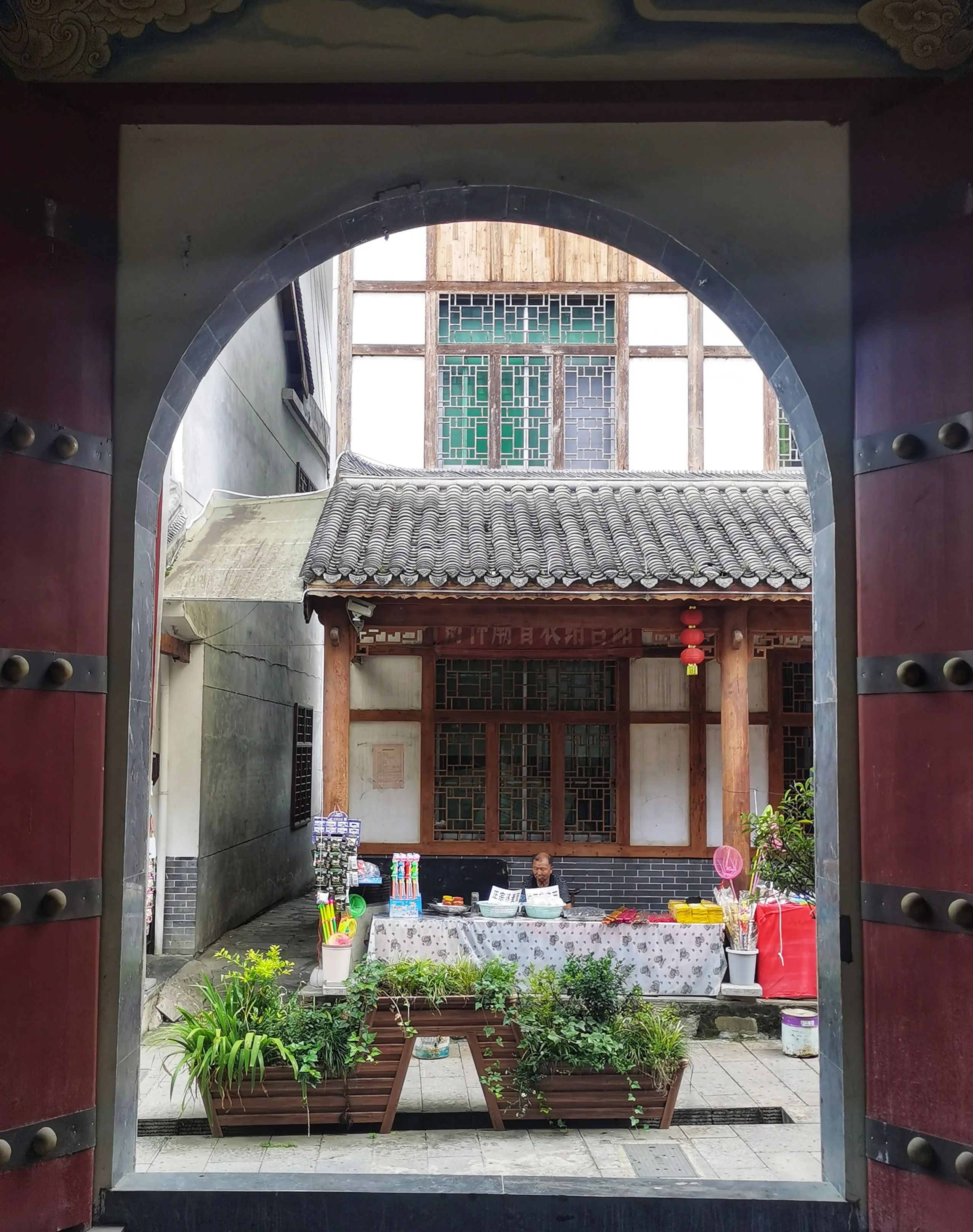 告别金台山的密教庄严,驱车一段路程,便来到舒展于清亮河道之上的云盖寺古镇。与金台山的“隐城”气象迥异,这里弥漫着浓郁的烟火气息。河水潺潺,是古镇流动的命脉,古老的石桥静卧其上,连接着两岸生活。临水而筑的老屋,黛瓦粉墙已被时光浸染得深沉,斑驳的门板、褪色的窗棂和门楣上模糊的旧痕,无声地诉说着过往的沧桑。几位老者闲坐门前,或低声絮语,或默然凝望着流淌的河水,眼神里是阅尽世事的平和。沿着河岸青石板铺就的小径漫步,脚下是水流温柔的伴奏。孩童在岸边嬉笑追逐,妇人临水浣衣,棒槌声清脆,也有如我这般好奇的旅人,用目光丈量着岁月的痕迹。这穿镇而过的河流,如同一位沉默的见证者,承载着日常的琐碎与时光的厚重 ,无论步履匆忙或悠闲,都在这亘古的水声里,流向各自的前方。